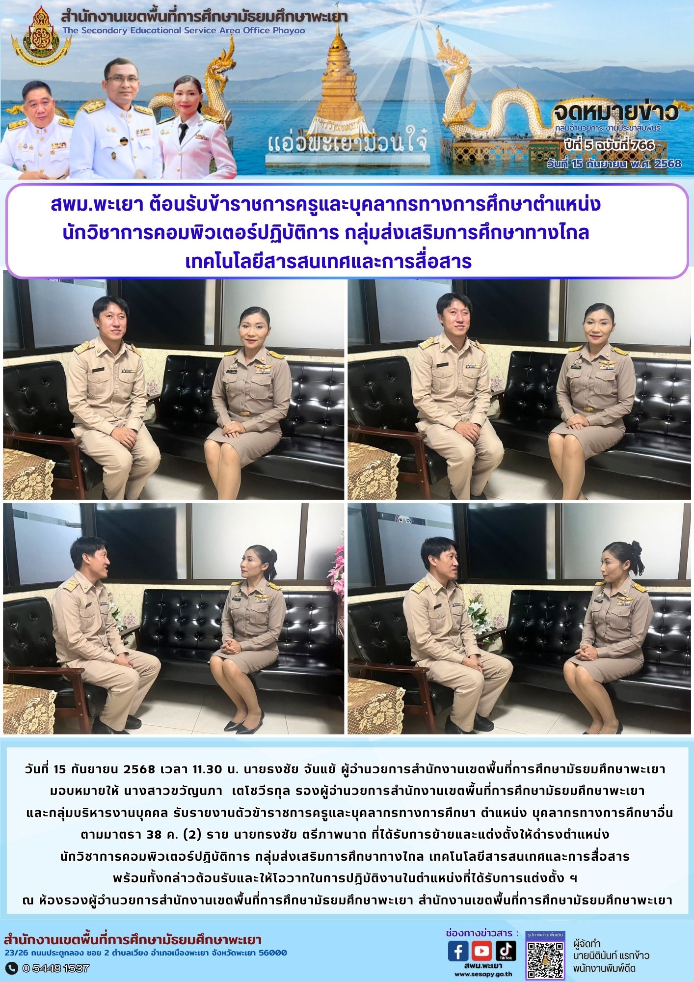 จดหมายข่าว สพม. กลุ่มอำนวยการ งานประชาสัมพันธ์ ปีที่ 5 ฉบับที่ 766 : 15 กันยายน 2568 15 กันยายน 202515 กันยายน 2025