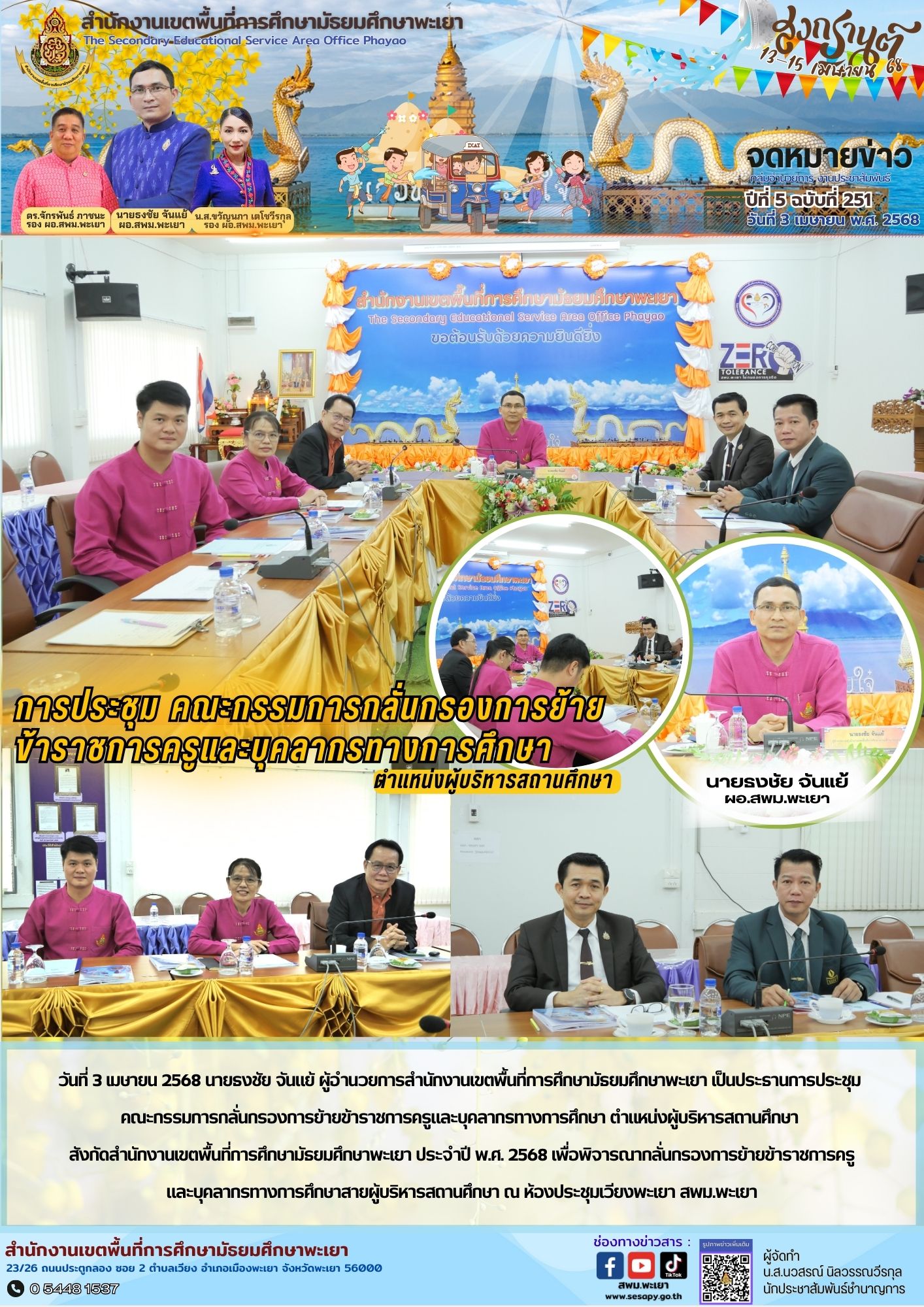 จดหมายข่าว สพม. กลุ่มอำนวยการ งานประชาสัมพันธ์ ปีที่ 5 ฉบับที่ 249 : 2 เมษายน 2568 2 เมษายน 20252 เมษายน 2025