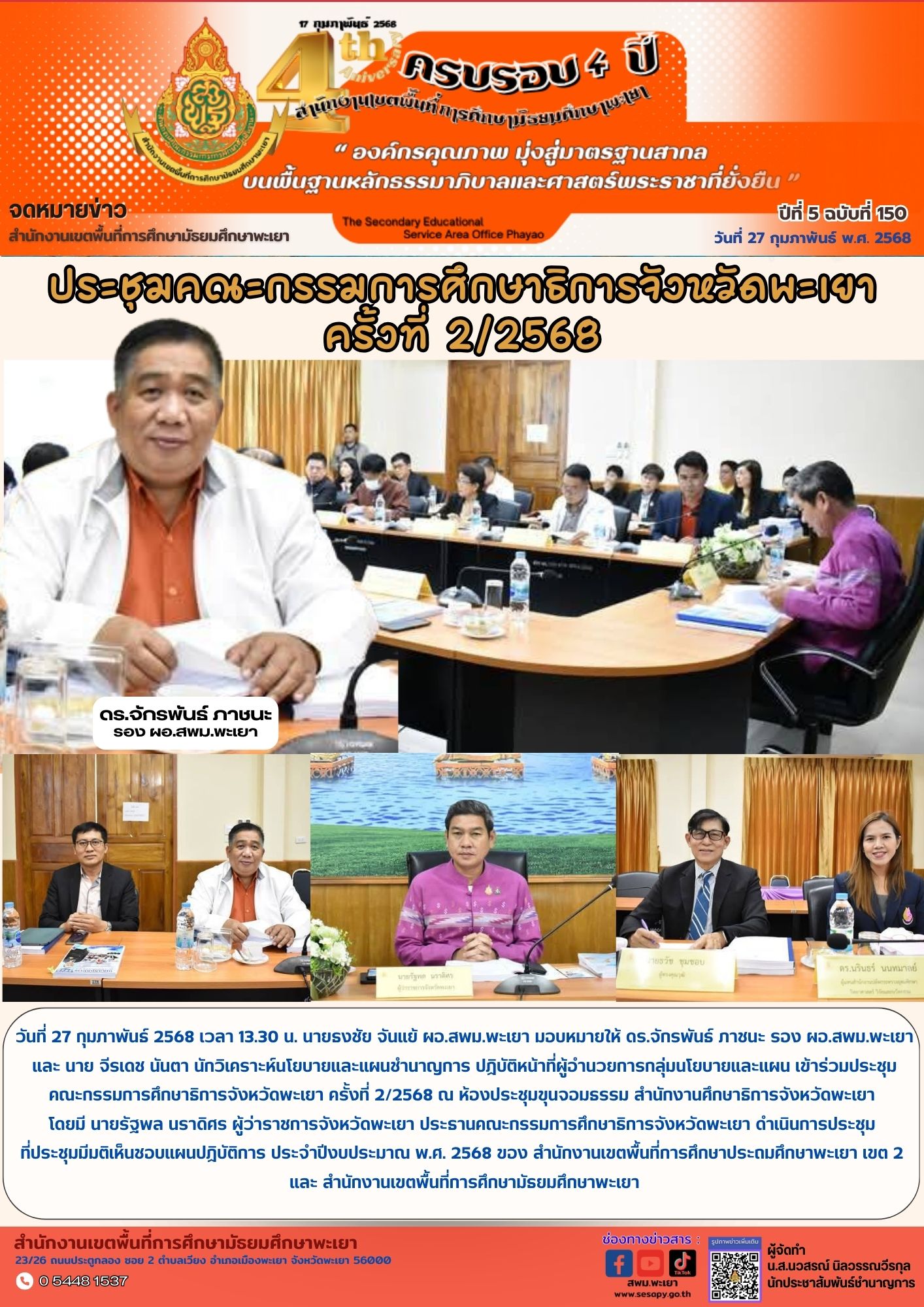 จดหมายข่าว สพม. กลุ่มอำนวยการ งานประชาสัมพันธ์ ปีที่ 5 ฉบับที่ 150 : 27 กุมภาพันธ์ 2568 28 กุมภาพันธ์ 202528 กุมภาพันธ์ 2025