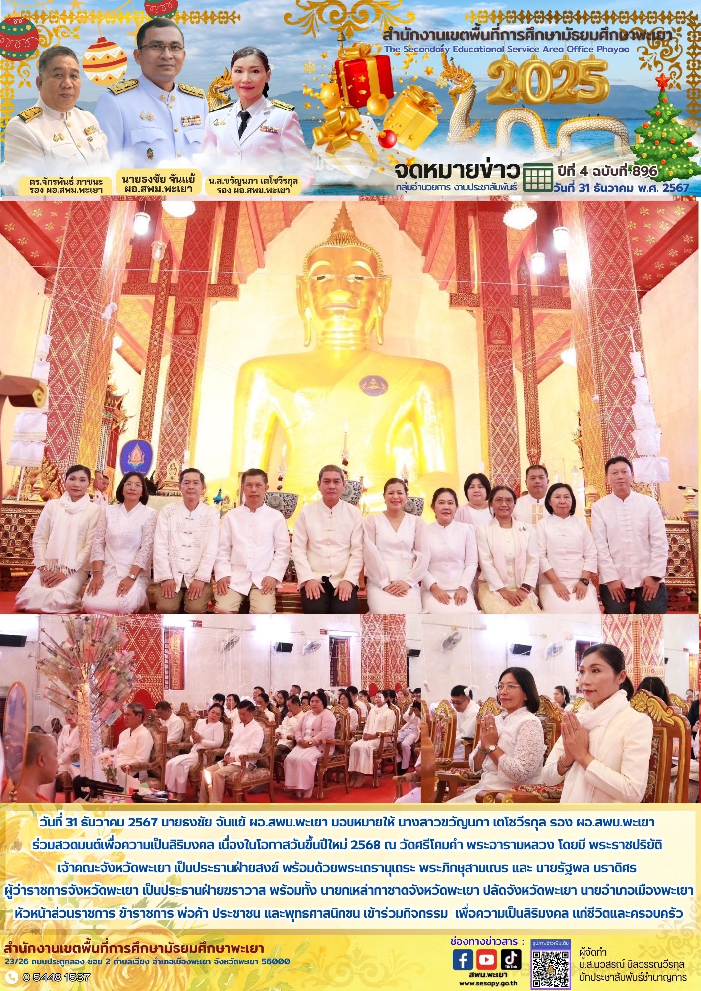 จดหมายข่าว สพม. กลุ่มอำนวยการ งานประชาสัมพันธ์ ปีที่ 4 ฉบับที่ 896 : 31 ธันวาคม 2567 1 มกราคม 20251 มกราคม 2025