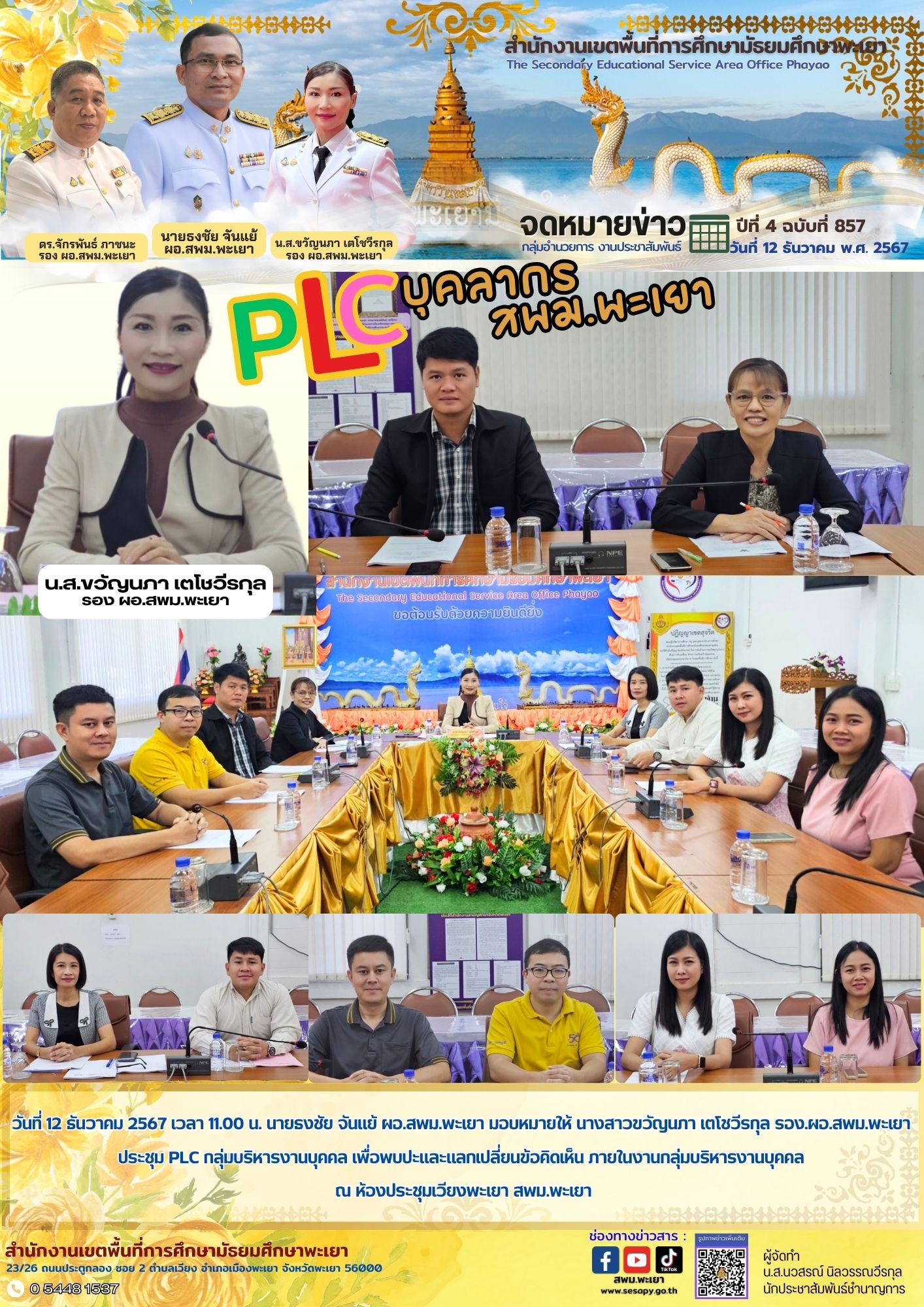 จดหมายข่าว สพม. กลุ่มอำนวยการ งานประชาสัมพันธ์ ปีที่ 4 ฉบับที่ 857:12 ธันวาคม 2567 12 ธันวาคม 202412 ธันวาคม 2024