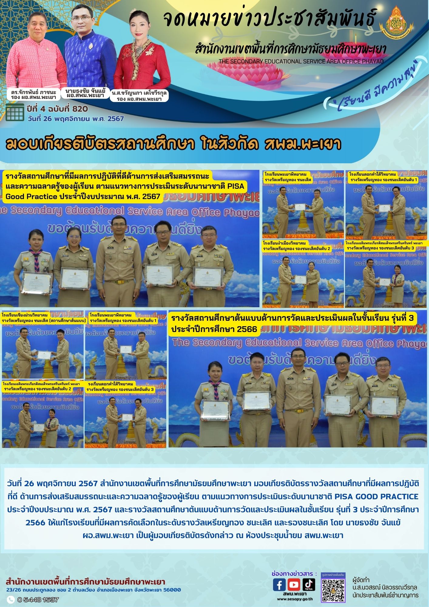 จดหมายข่าว สพม. กลุ่มอำนวยการ งานประชาสัมพันธ์ ปีที่ 4 ฉบับที่ 820:26 พฤศจิกายน 2567 27 พฤศจิกายน 202427 พฤศจิกายน 2024
