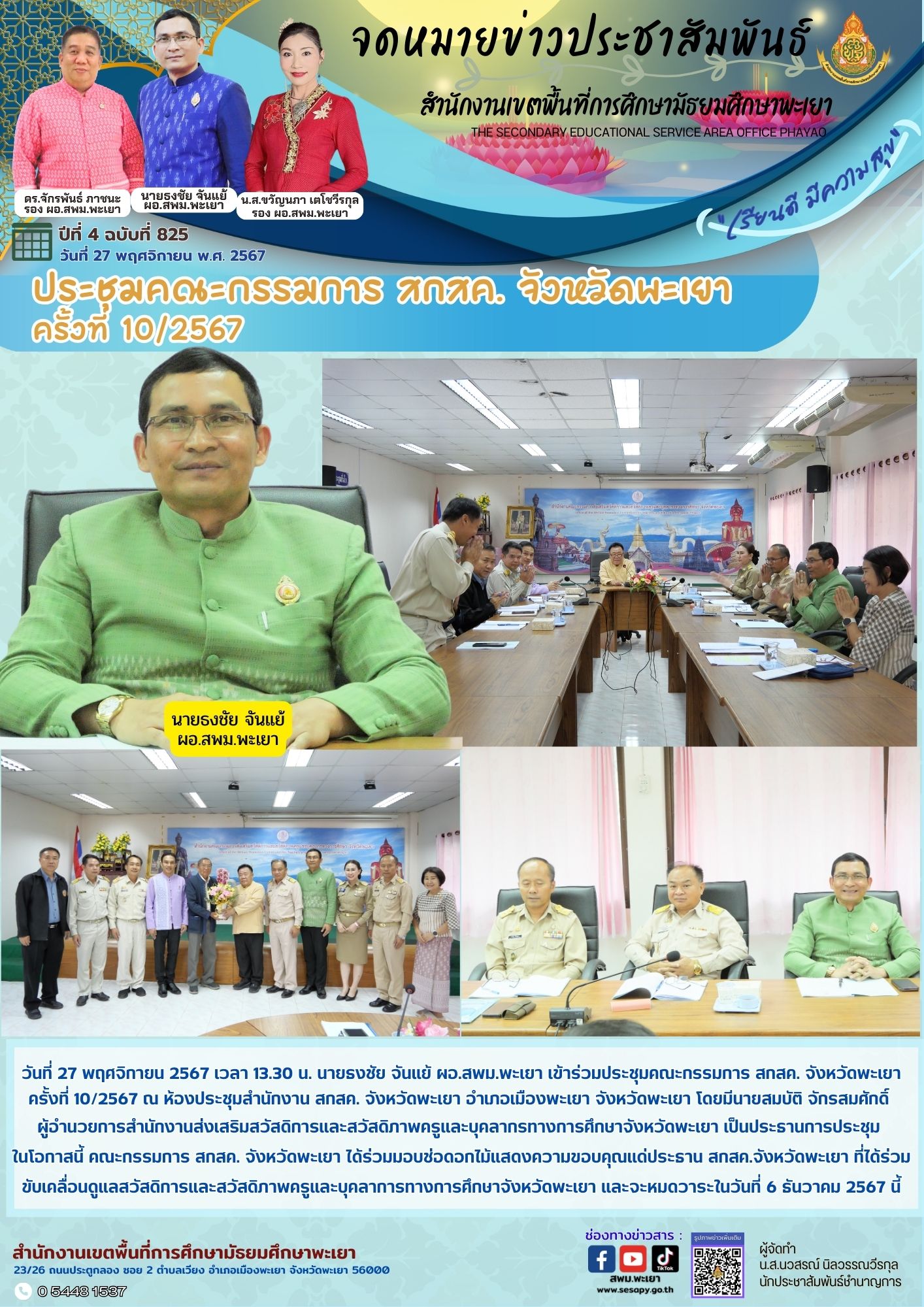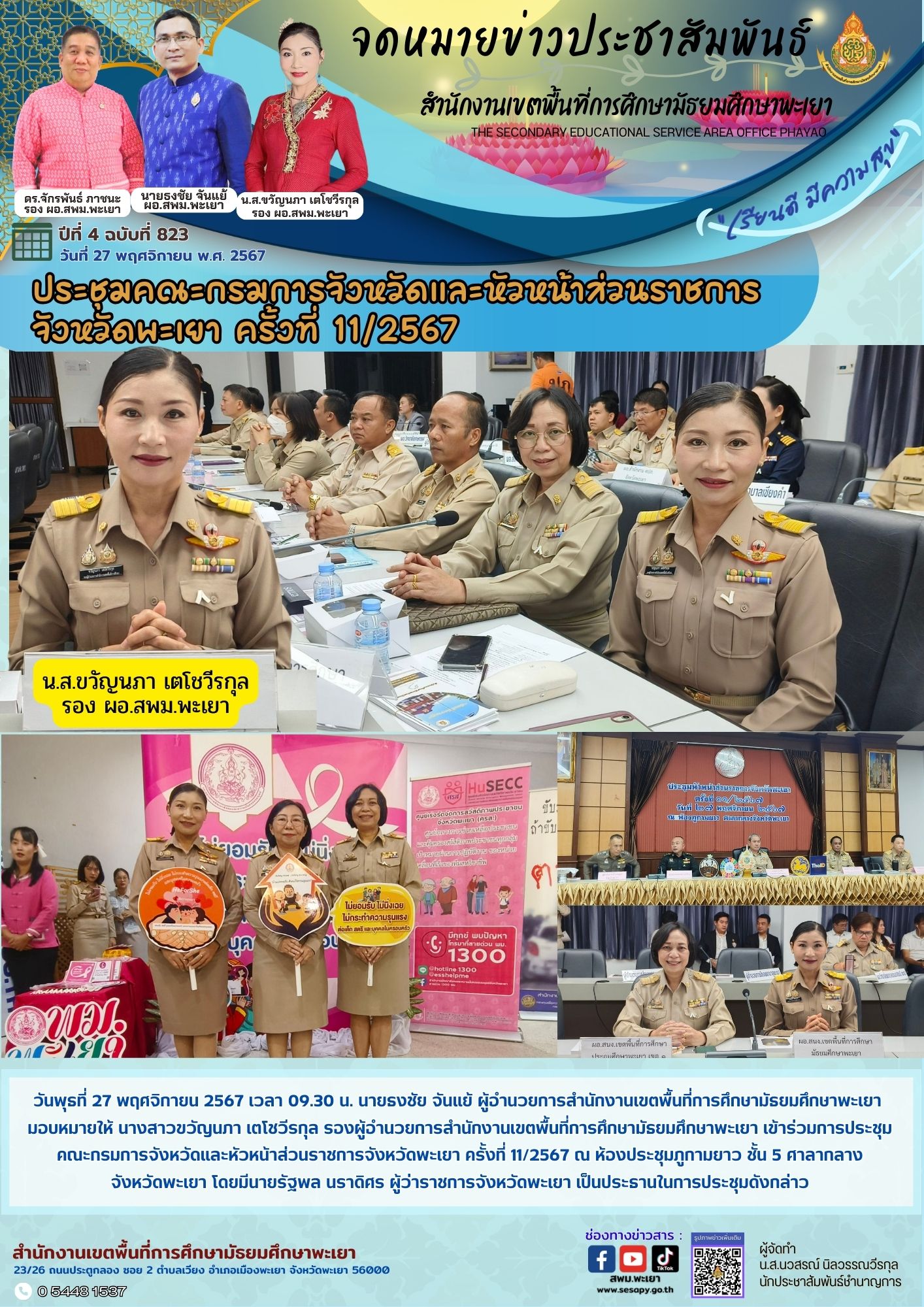 จดหมายข่าว สพม. กลุ่มอำนวยการ งานประชาสัมพันธ์ ปีที่ 4 ฉบับที่ 827:28 พฤศจิกายน 2567 28 พฤศจิกายน 202428 พฤศจิกายน 2024