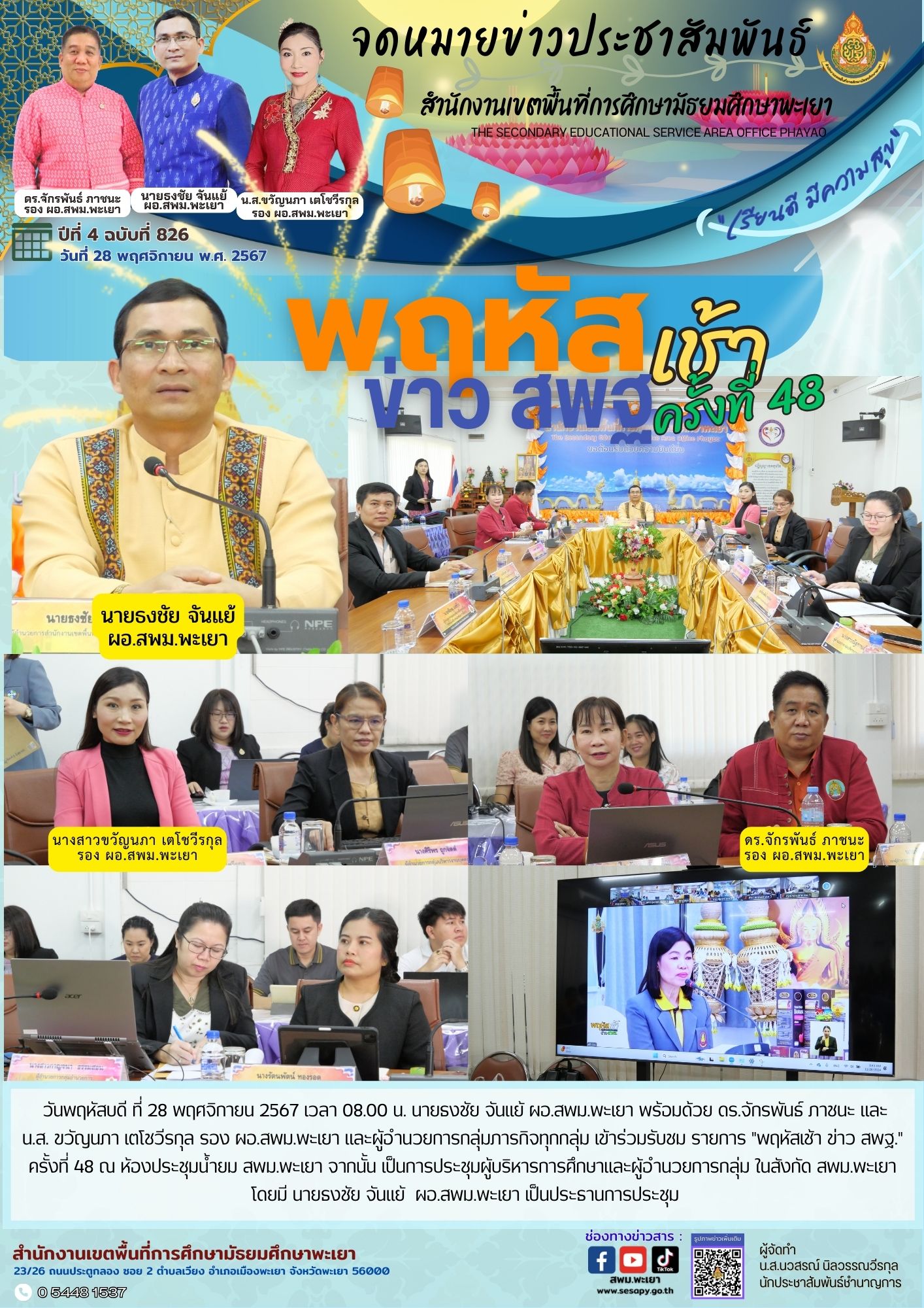 จดหมายข่าว สพม. กลุ่มอำนวยการ งานประชาสัมพันธ์ ปีที่ 4 ฉบับที่ 826:28 พฤศจิกายน 2567 28 พฤศจิกายน 202428 พฤศจิกายน 2024
