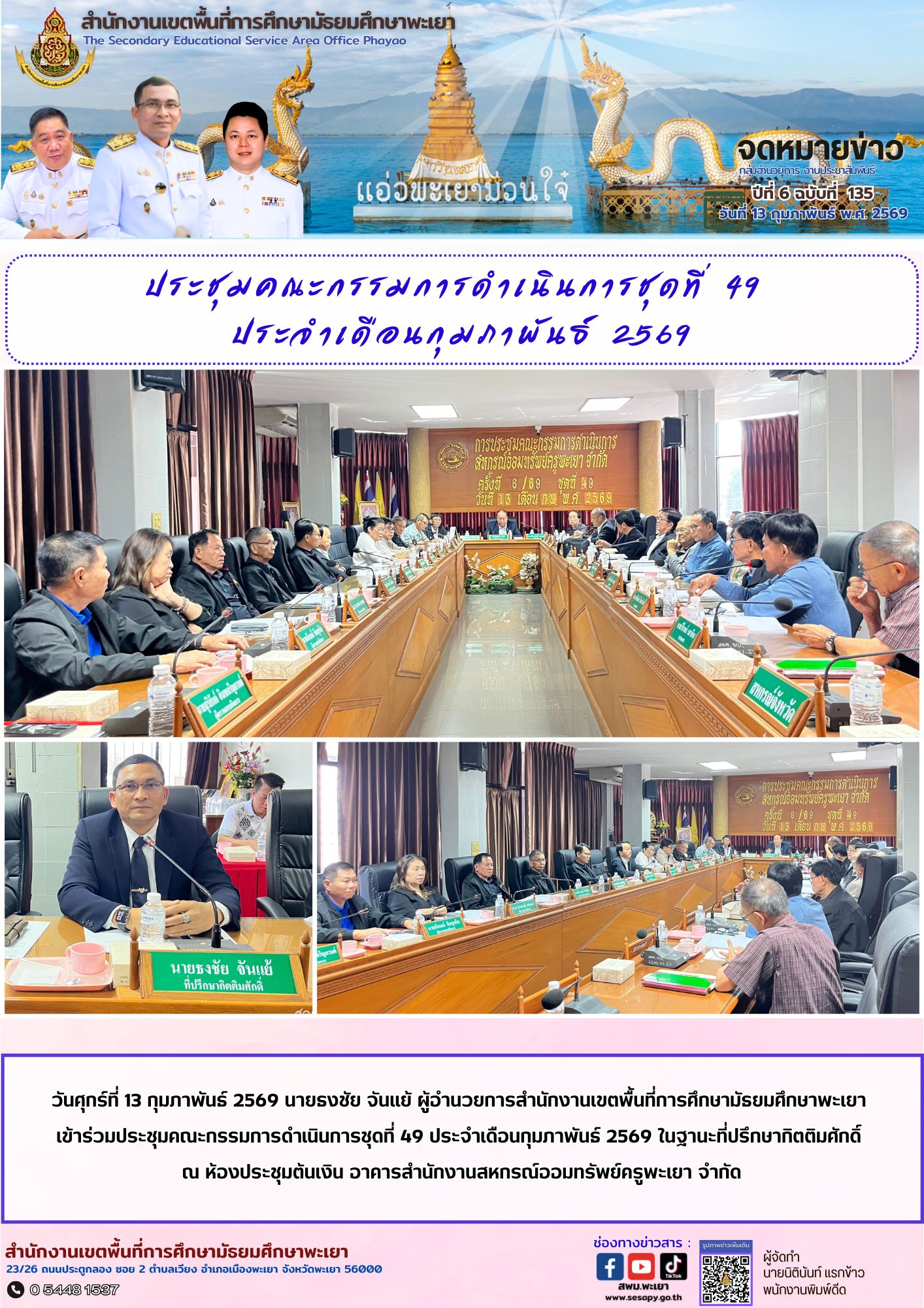 จดหมายข่าว สพม. กลุ่มอำนวยการ งานประชาสัมพันธ์ ปีที่ 6 ฉบับที่ 135 : 13 กุมภาพันธ์ 2569 17 กุมภาพันธ์ 202617 กุมภาพันธ์ 2026
