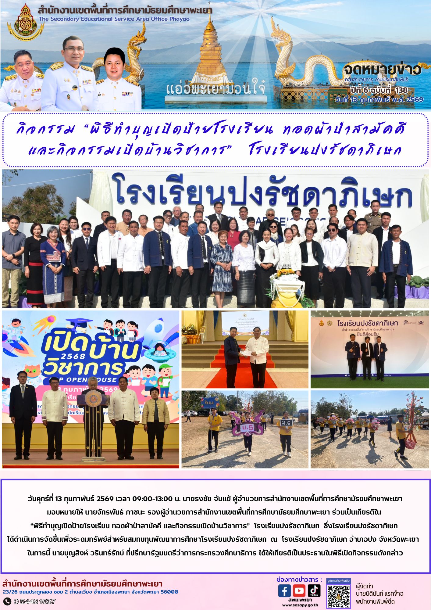 จดหมายข่าว สพม. กลุ่มอำนวยการ งานประชาสัมพันธ์ ปีที่ 6 ฉบับที่ 138 : 13 กุมภาพันธ์ 2569 17 กุมภาพันธ์ 202617 กุมภาพันธ์ 2026