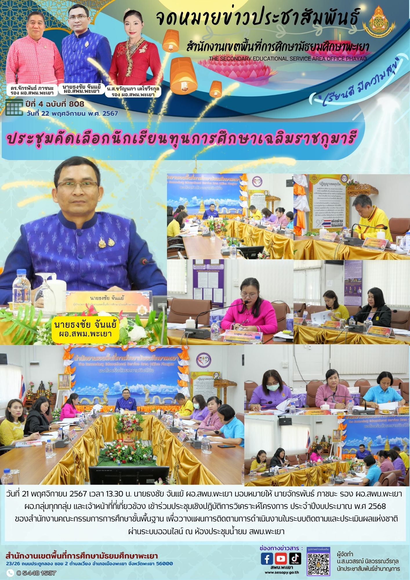 จดหมายข่าว สพม. กลุ่มอำนวยการ งานประชาสัมพันธ์ ปีที่ 4 ฉบับที่ 819:26 พฤศจิกายน 2567 27 พฤศจิกายน 202427 พฤศจิกายน 2024
