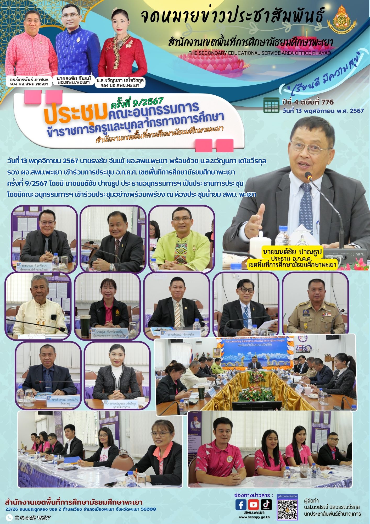 จดหมายข่าว สพม. กลุ่มอำนวยการ งานประชาสัมพันธ์ ปีที่ 4 ฉบับที่ 776:13 พฤศจิกายน 2567 15 พฤศจิกายน 202415 พฤศจิกายน 2024