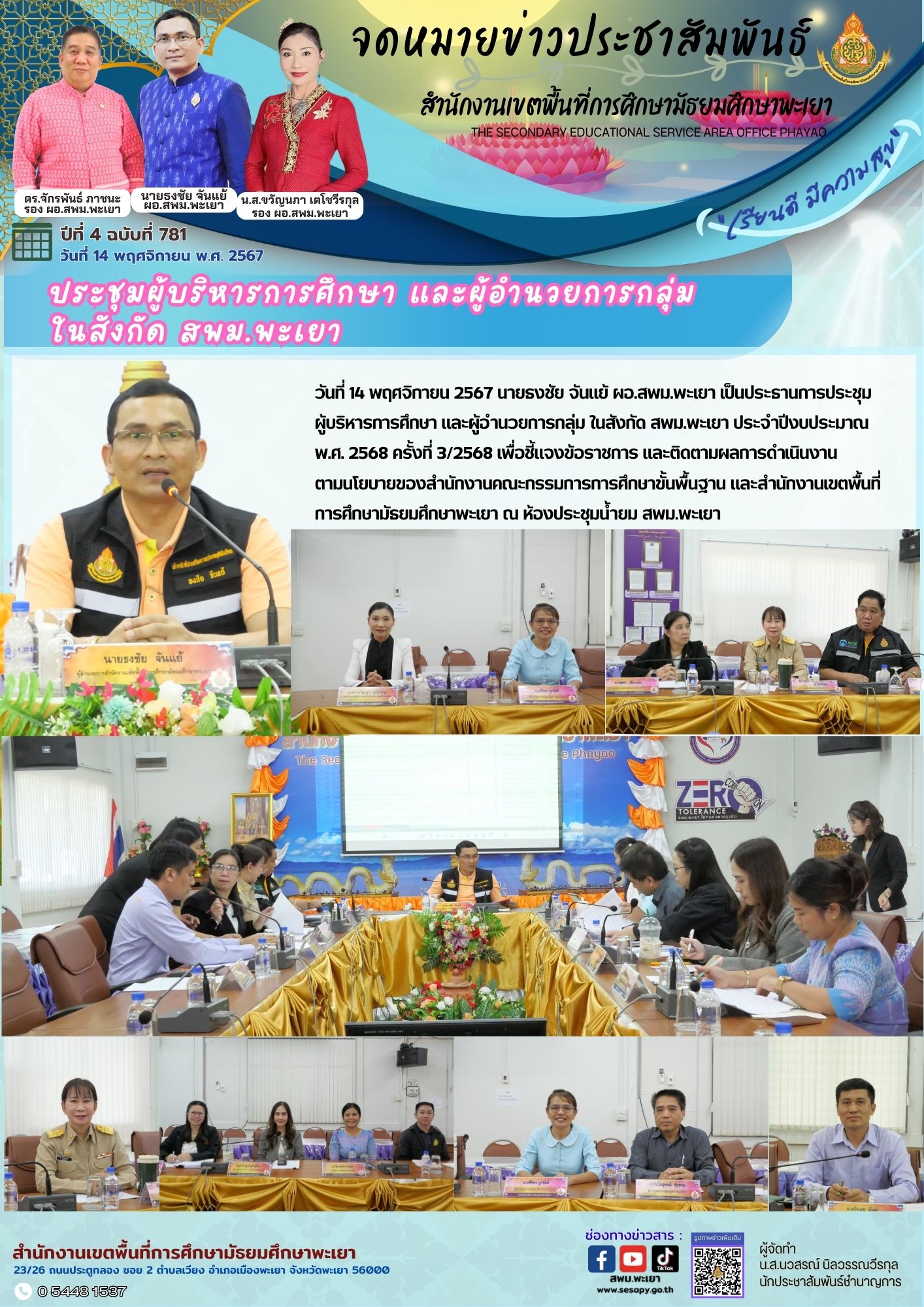 จดหมายข่าว สพม. กลุ่มอำนวยการ งานประชาสัมพันธ์ ปีที่ 4 ฉบับที่ 781:14 พฤศจิกายน 2567 15 พฤศจิกายน 202415 พฤศจิกายน 2024