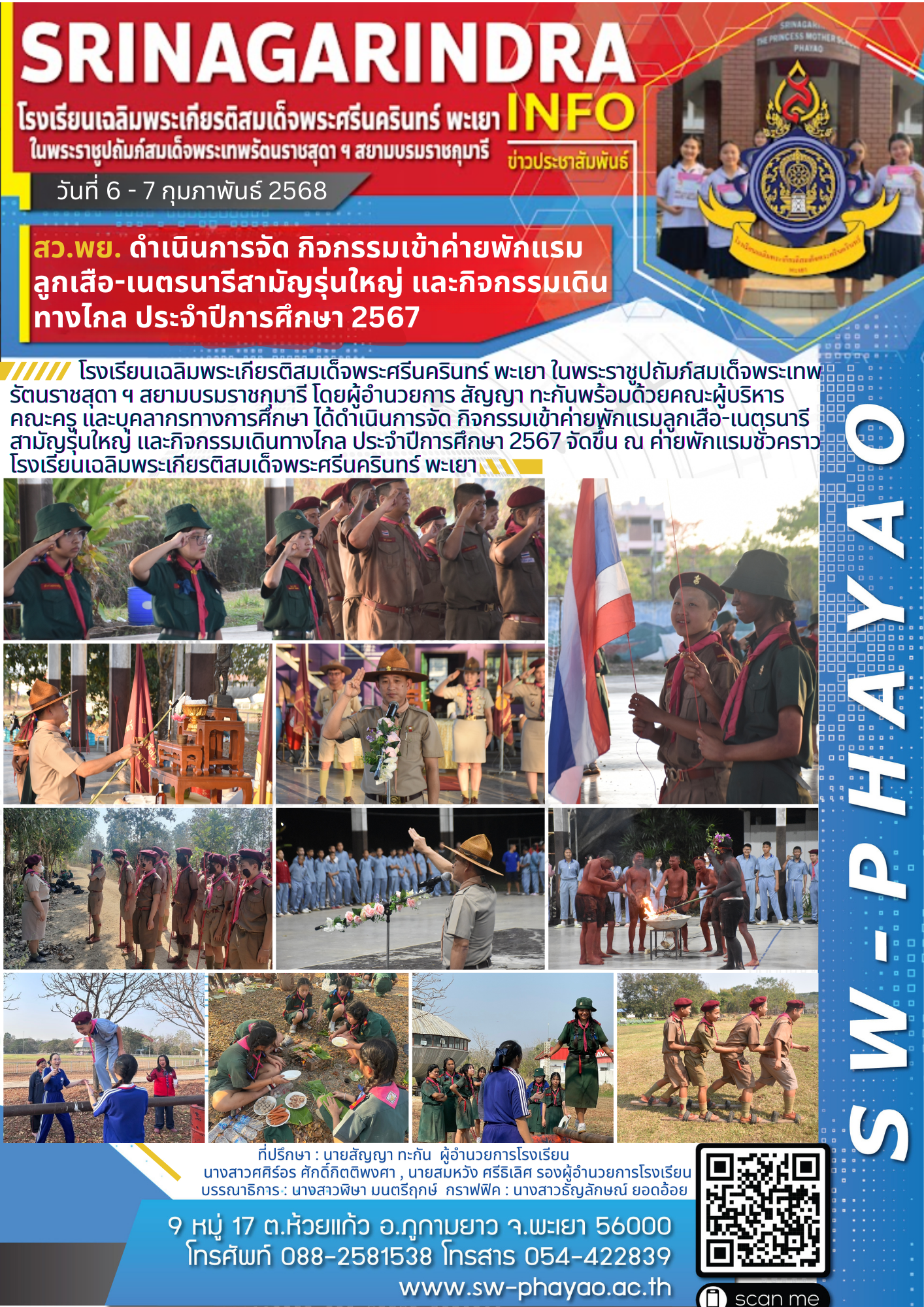 จดหมายข่าวโรงเรียน สว.พย. ดำเนินการจัด กิจกรรมเข้าค่ายพักแรมลูกเสือ-เนตรนารีสามัญรุ่นใหญ่ และกิจกรรมเดินทางไกล ประจำปีการศึกษา 2567 7 กุมภาพันธ์ 20257 กุมภาพันธ์ 2025