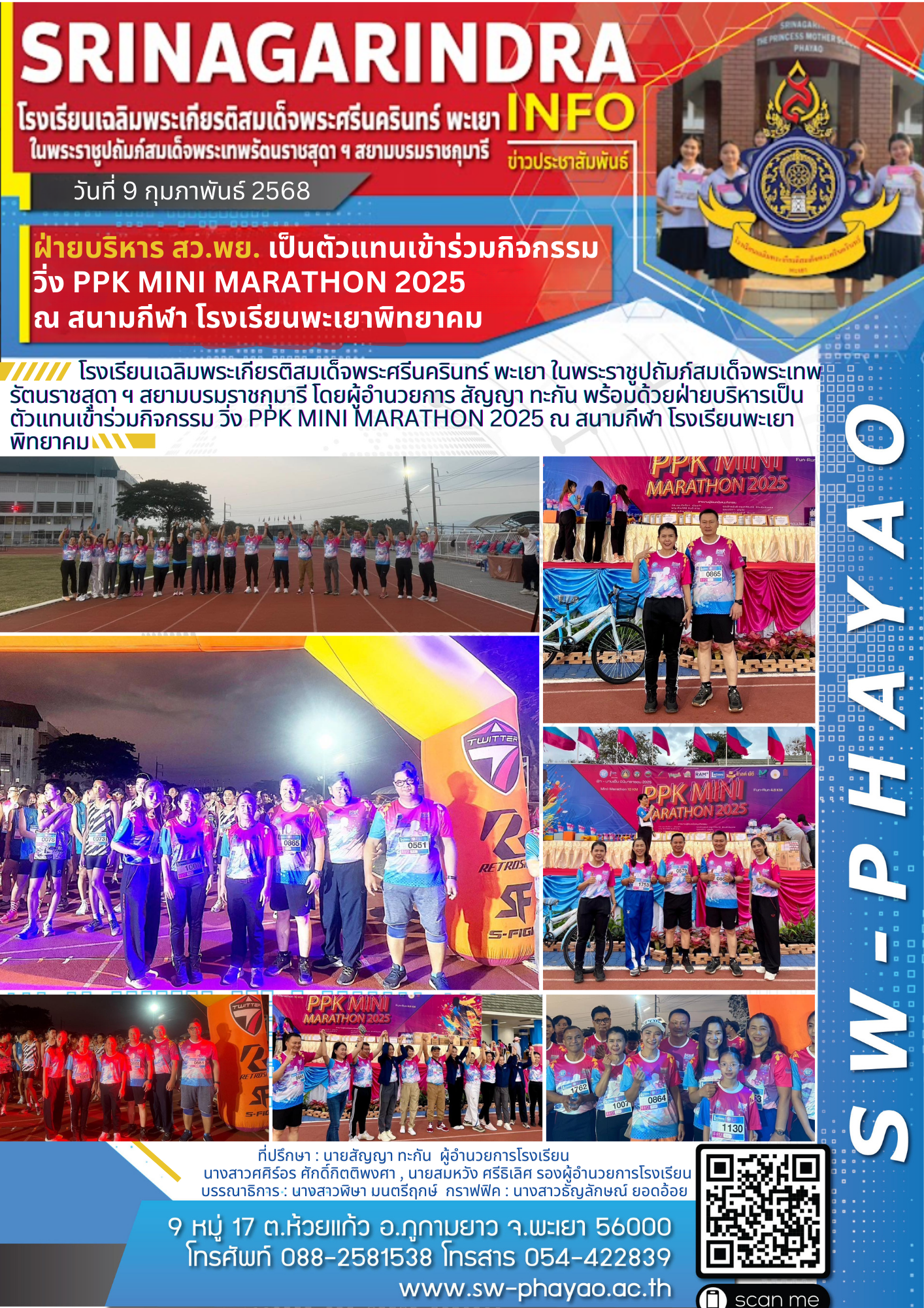 จดหมายข่าวโรงเรียน ฝ่ายบริหาร สว.พย. เป็นตัวแทนเข้าร่วมกิจกรรม วิ่ง PPK MINI MARATHON 2025 ณ สนามกีฬา โรงเรียนพะเยาพิทยาคม 9 กุมภาพันธ์ 20259 กุมภาพันธ์ 2025