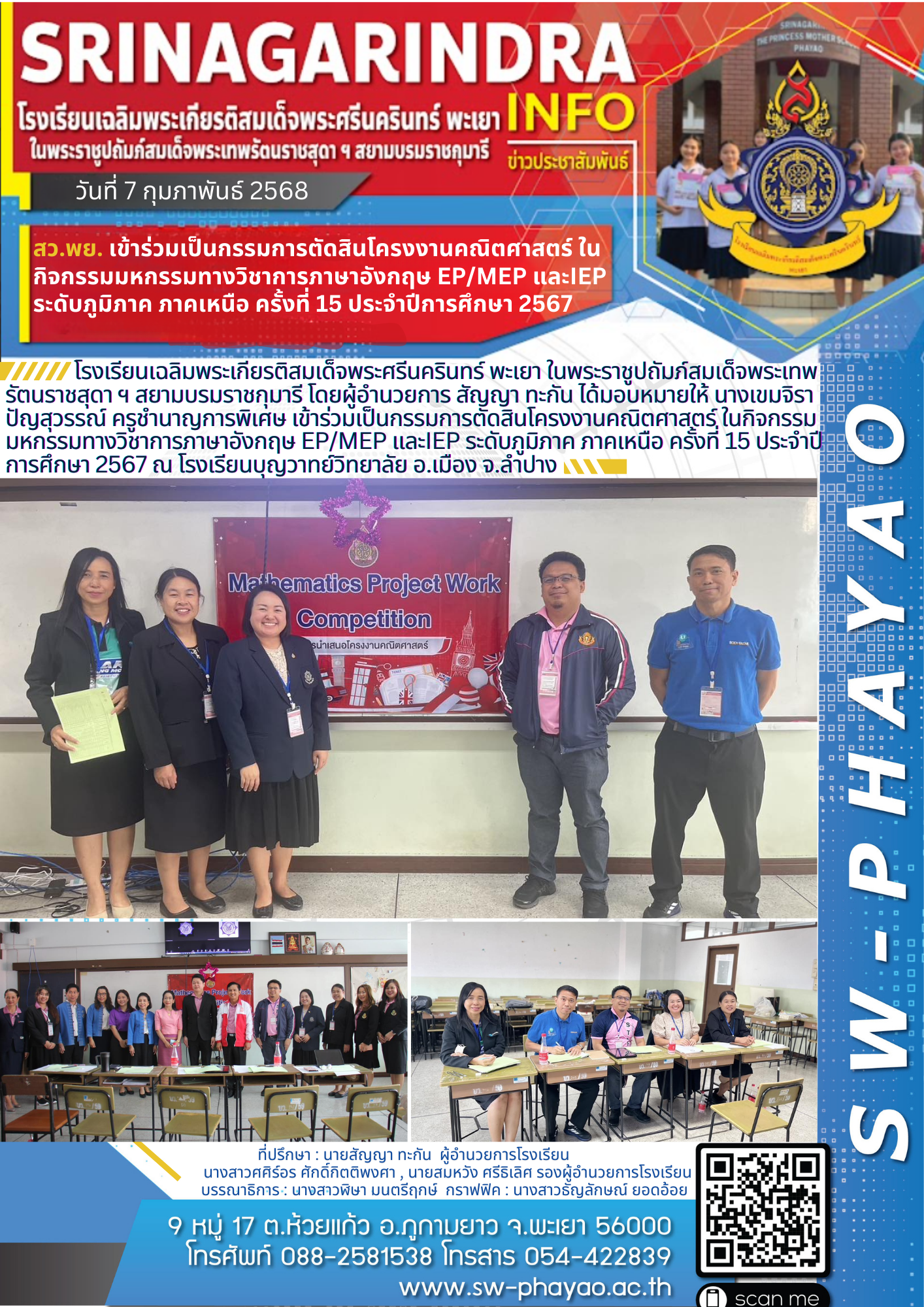 จดหมายข่าวโรงเรียน สว.พย. เข้าร่วมเป็นกรรมการตัดสินโครงงานคณิตศาสตร์ ในกิจกรรมมหกรรมทางวิชาการภาษาอังกฤษ EP MEP และIEP ระดับภูมิภาค ภาคเหนือ ครั้งที่ 15 ประจำปีการศึกษา 2567 9 กุมภาพันธ์ 20259 กุมภาพันธ์ 2025