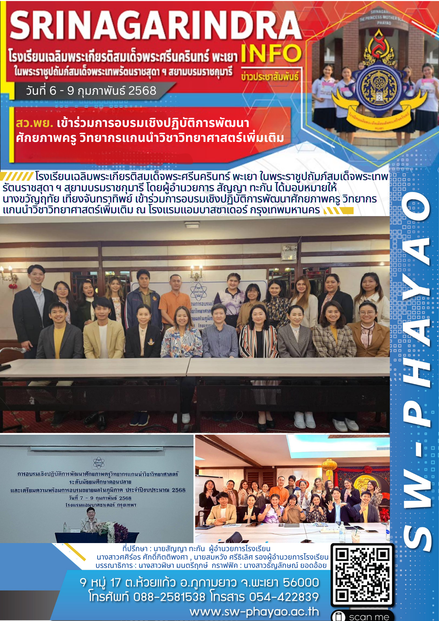 จดหมายข่าวโรงเรียน สว.พย. เข้าร่วมการอบรมเชิงปฏิบัติการพัฒนาศักยภาพครู วิทยากรแกนนำวิชาวิทยาศาสตร์เพิ่มเติม 9 กุมภาพันธ์ 20259 กุมภาพันธ์ 2025