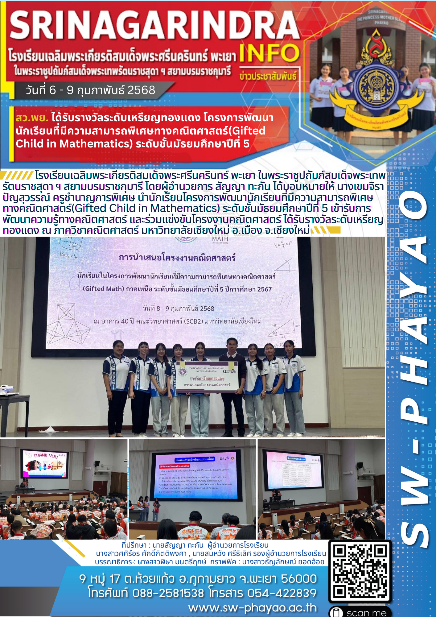 จดหมายข่าวโรงเรียน สว.พย. ได้รับรางวัลระดับเหรียญทองแดง โครงการพัฒนานักเรียนที่มีความสามารถพิเศษทางคณิตศาสตร์(Gifted Child in Mathematics) ระดับชั้นมัธยมศึกษาปีที่ 5 9 กุมภาพันธ์ 20259 กุมภาพันธ์ 2025