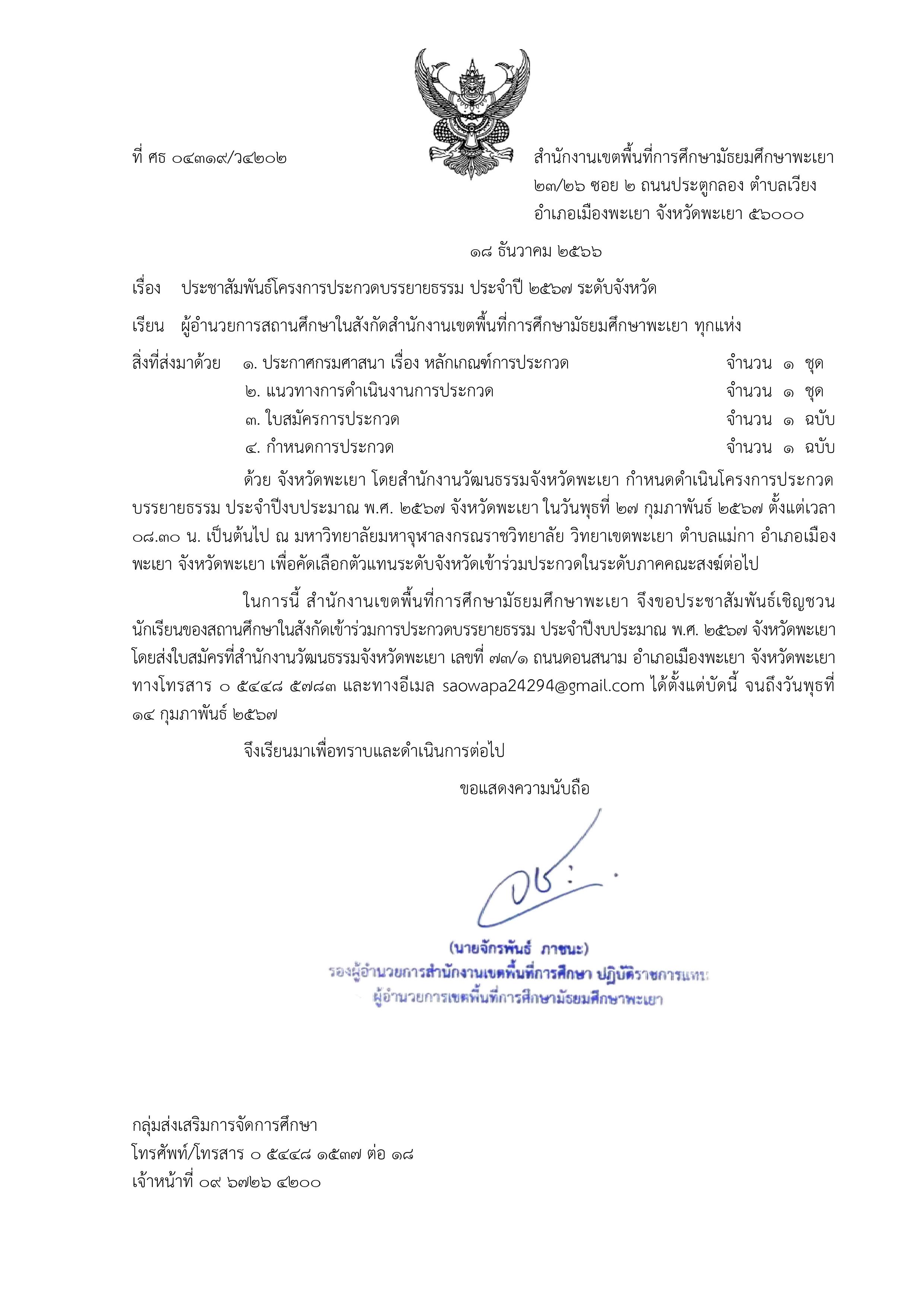 ข่าวประชาสัมพันธ์ ประกาศ สพม.พะเยา เรื่อง รายชื่อผู้สมัครสอบ และกำหนดการสอบคัดเลือกผู้แทนประเทศไทยไปแข่งขันวิทยาศาสตร์โอลิมปิกระหว่างประเทศ ระดับมัธยมศึกษาตอนต้น ครั้งที่ 21 (21st IJSO) รอบที่ 1 15 มกราคม 202415 มกราคม 2024