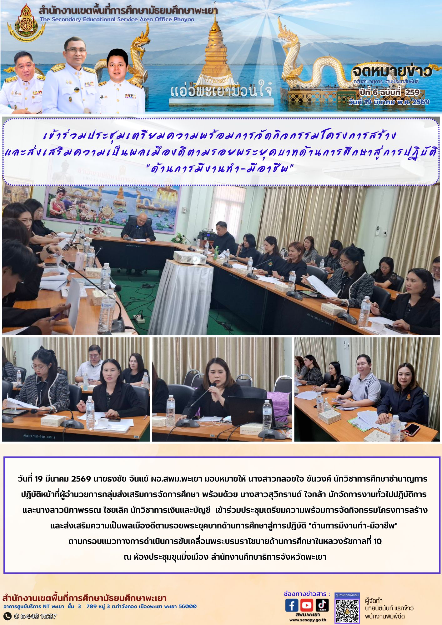 จดหมายข่าว สพม. อำนวยการ งานประชาสัมพันธ์ ปีที่ 6 ฉบับที่ 258 : 19 มีนาคม 2569 24 มีนาคม 202624 มีนาคม 2026
