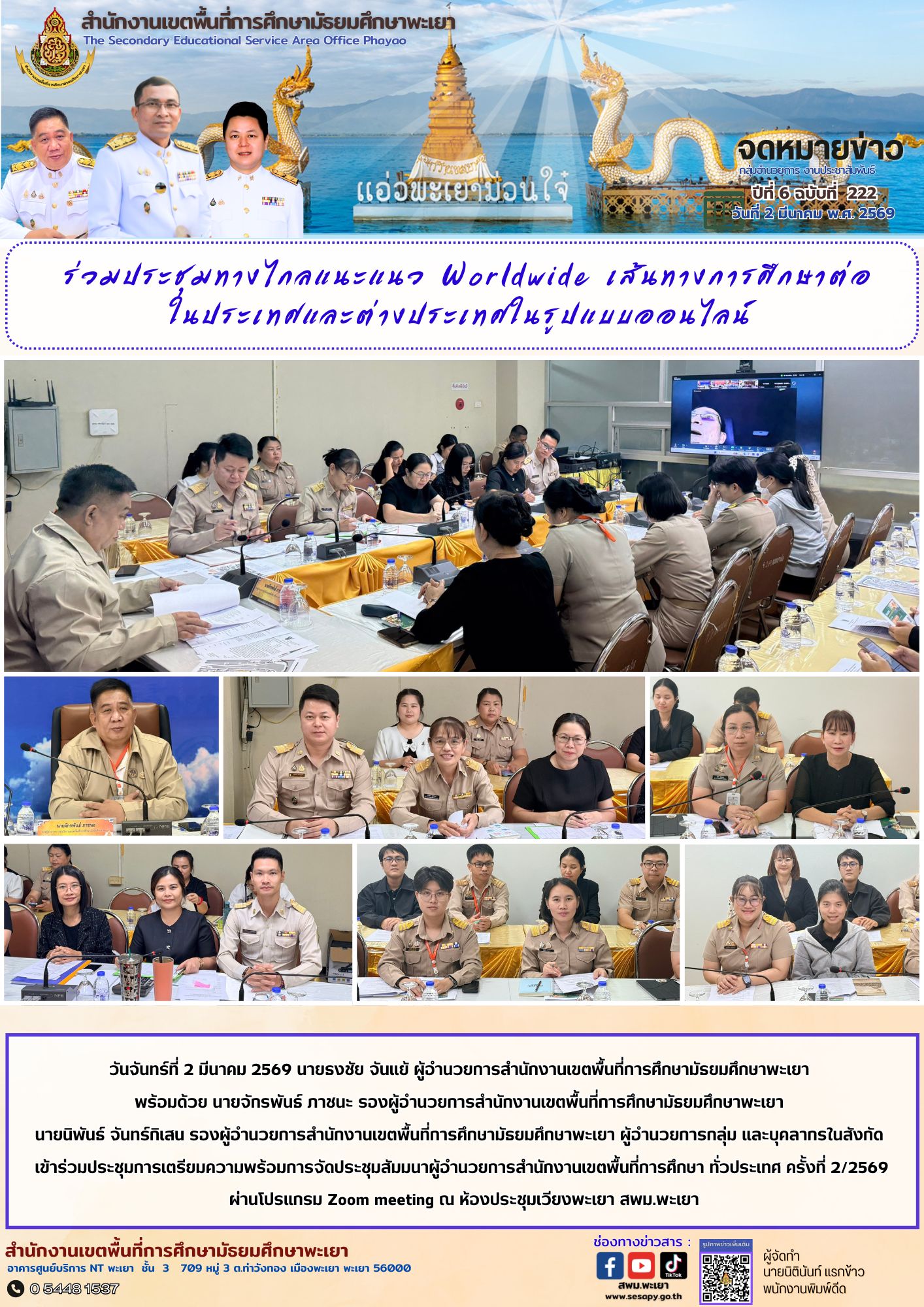 จดหมายข่าว สพม. อำนวยการ งานประชาสัมพันธ์ ปีที่ 6 ฉบับที่ 222 : 2 มีนาคม 2569 10 มีนาคม 202610 มีนาคม 2026