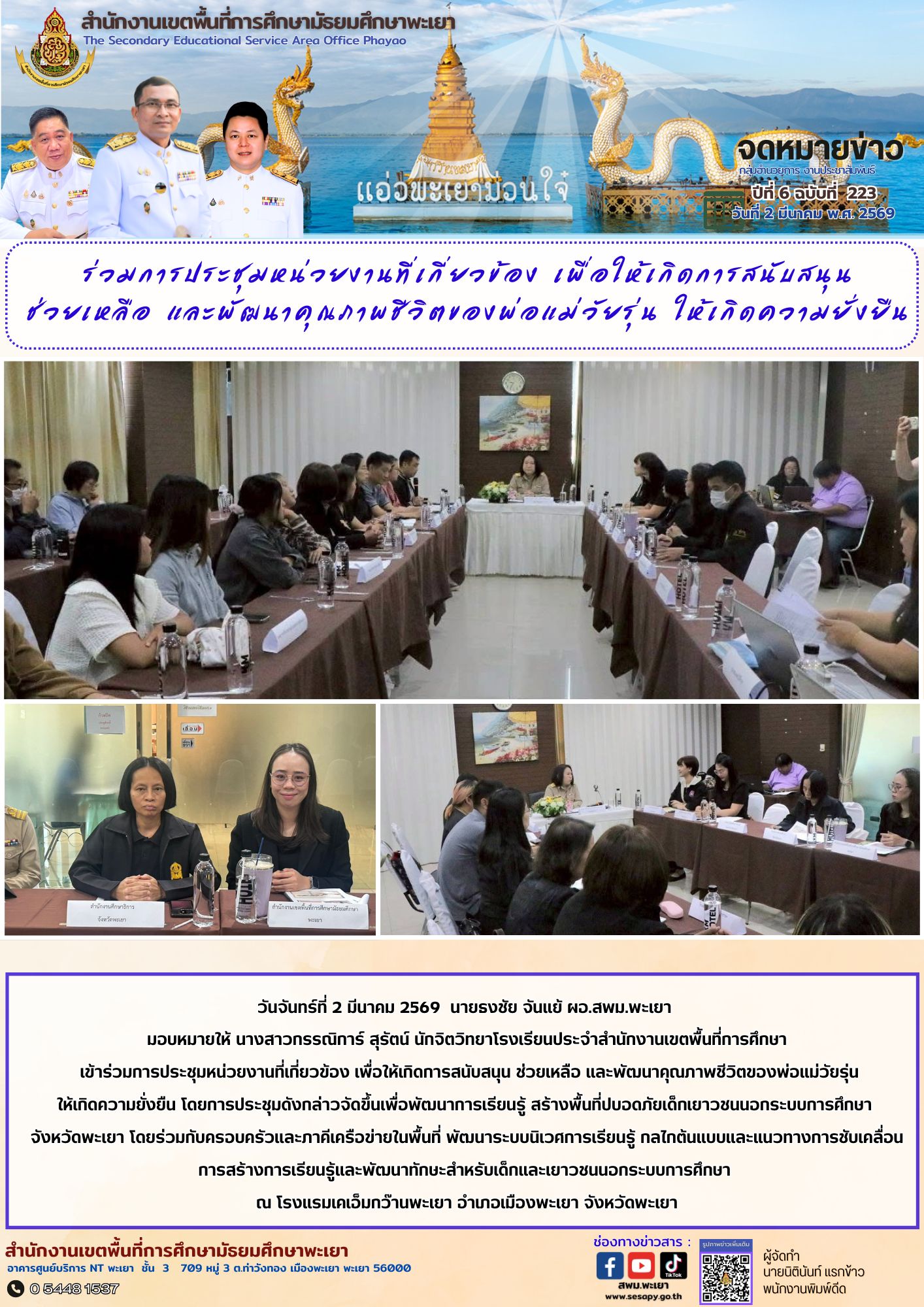 จดหมายข่าว สพม. อำนวยการ งานประชาสัมพันธ์ ปีที่ 6 ฉบับที่ 223 : 2 มีนาคม 2569 10 มีนาคม 202610 มีนาคม 2026