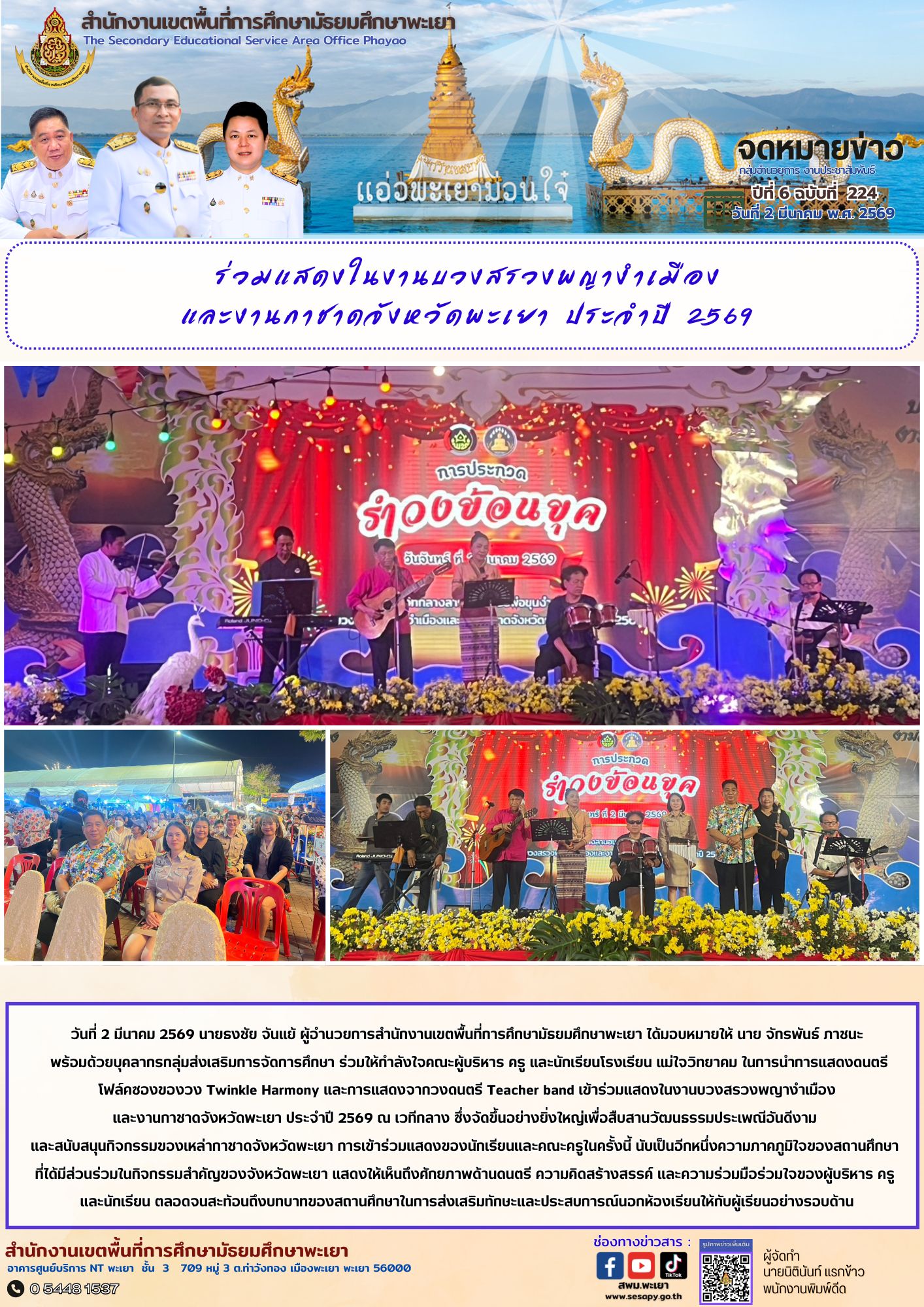 จดหมายข่าว สพม. อำนวยการ งานประชาสัมพันธ์ ปีที่ 6 ฉบับที่ 224 : 2 มีนาคม 2569 10 มีนาคม 202610 มีนาคม 2026