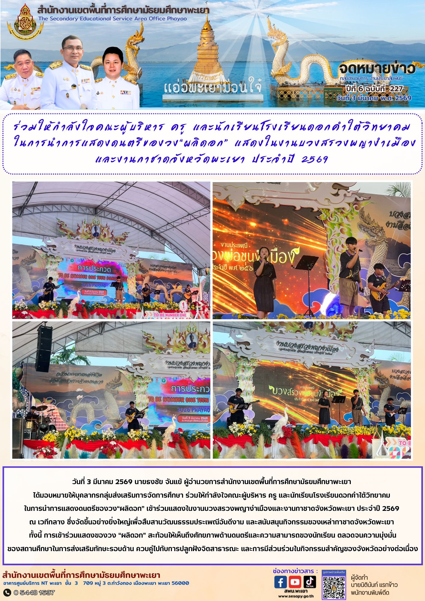 จดหมายข่าว สพม. อำนวยการ งานประชาสัมพันธ์ ปีที่ 6 ฉบับที่ 227 : 3 มีนาคม 2569 10 มีนาคม 202610 มีนาคม 2026