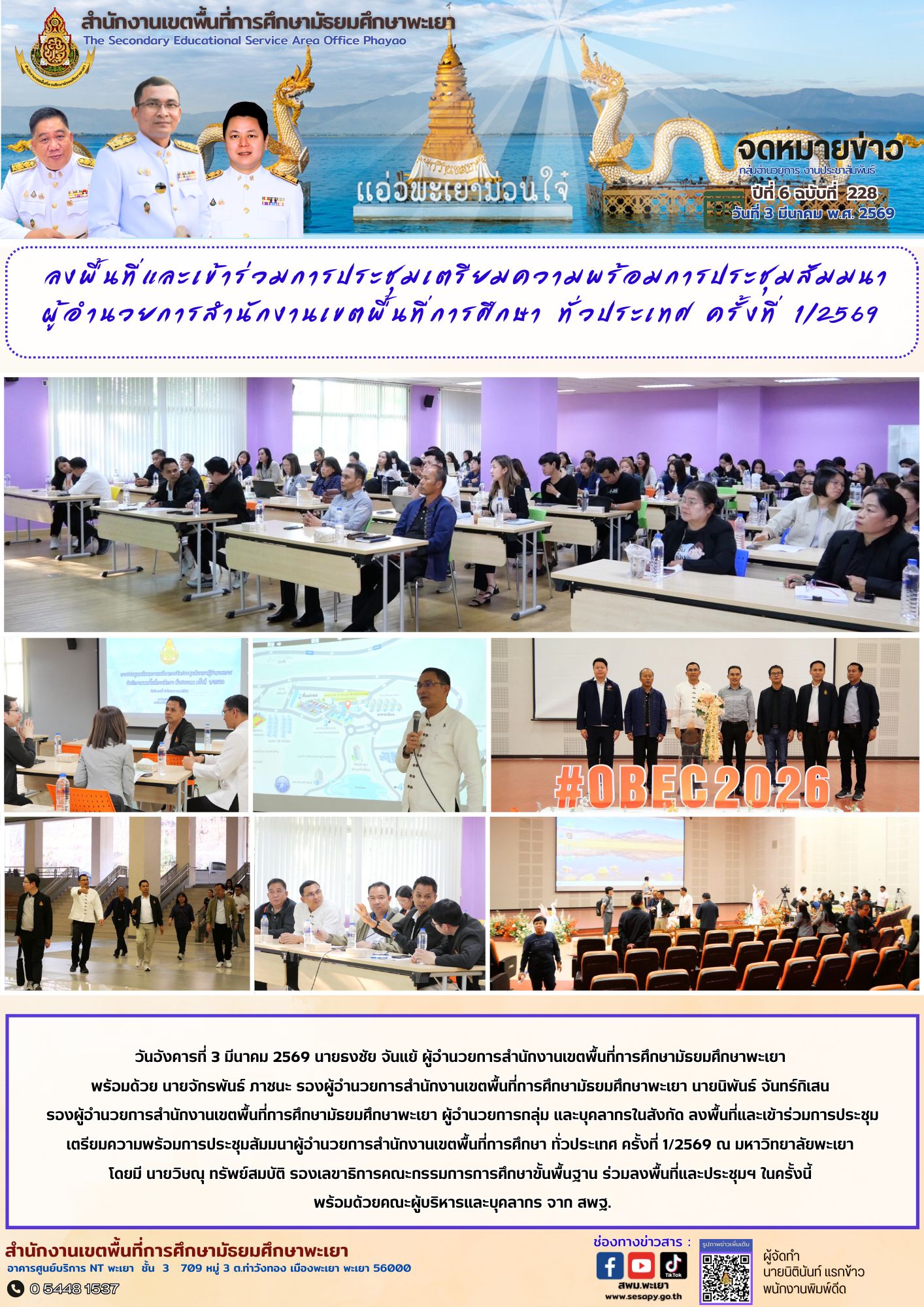 จดหมายข่าว สพม. อำนวยการ งานประชาสัมพันธ์ ปีที่ 6 ฉบับที่ 228 : 3 มีนาคม 2569 10 มีนาคม 202610 มีนาคม 2026