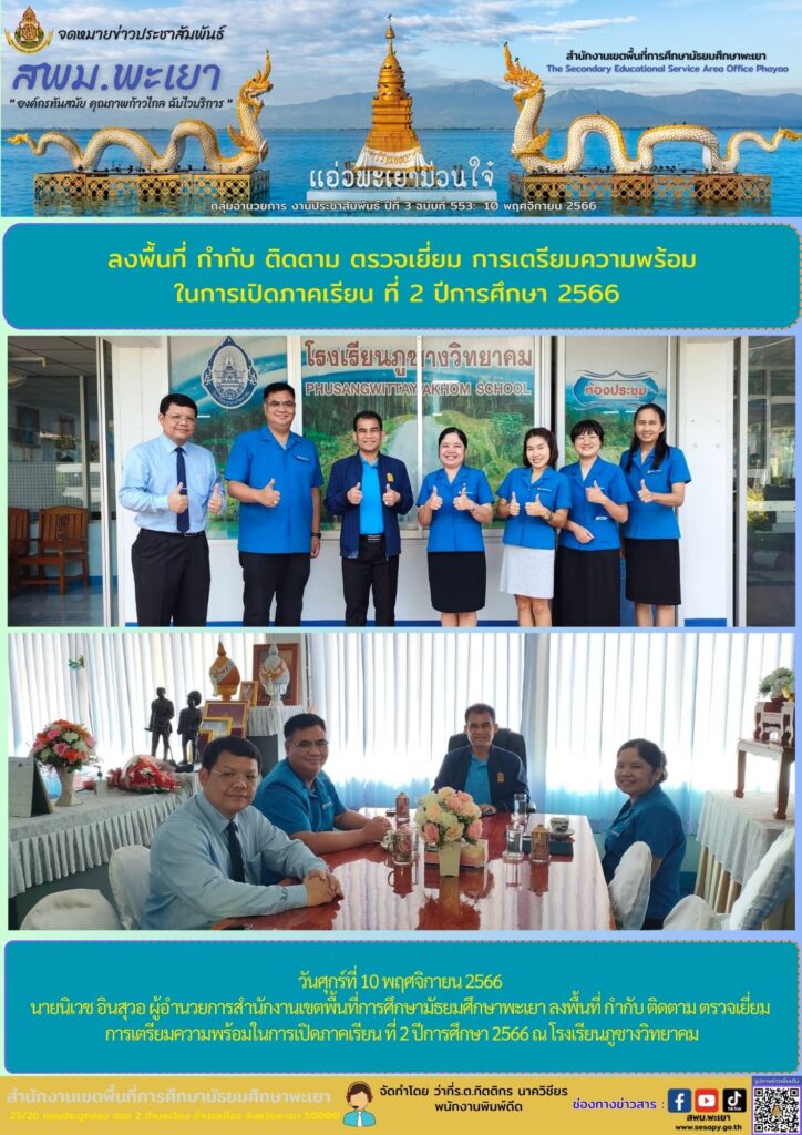 นายนิเวช อินสุวอ ผู้อำนวยการสำนักงานเขตพื้นที่การศึกษามัธยมศึกษาพะเยา ลงพื้นที่ กำกับ ติดตาม ตรวจเยี่ยม