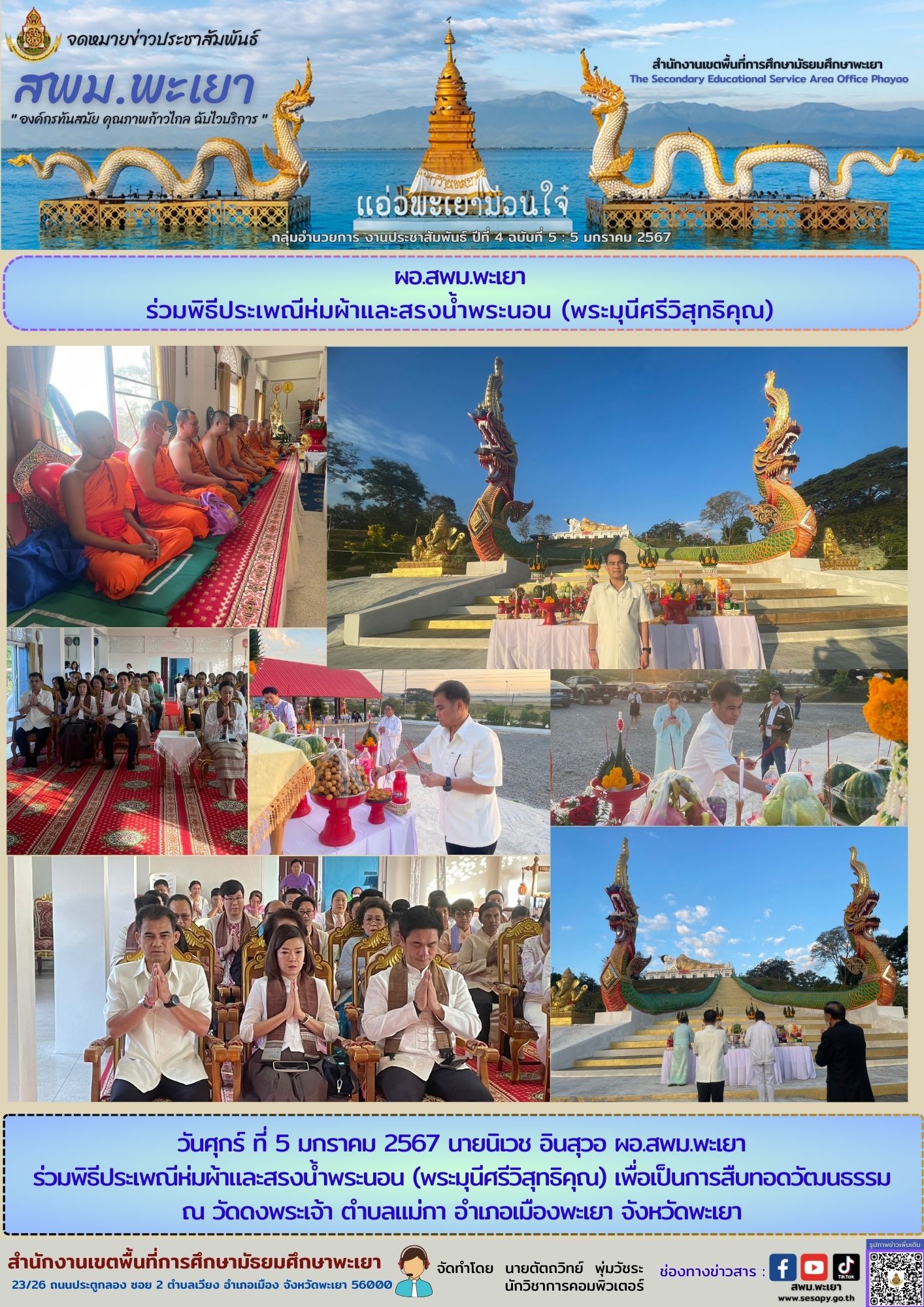 วันศุกร์ ที่ 5 มกราคม 2567 นายนิเวช อินสุวอ ผอ.สพม.พะเยา