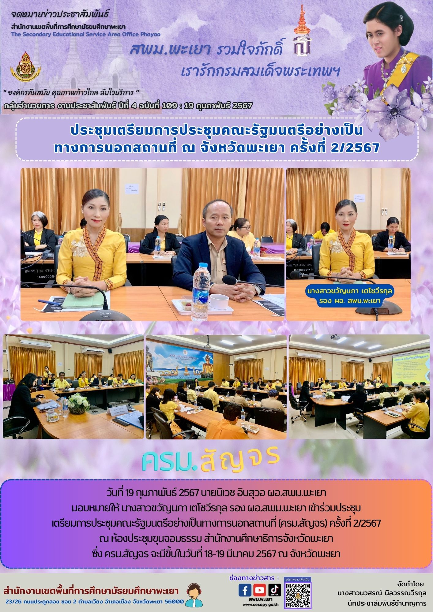 วันที่ 19 กุมภาพันธ์ 2567 นายนิเวช อินสุวอ ผอ.สพม.พะเยา