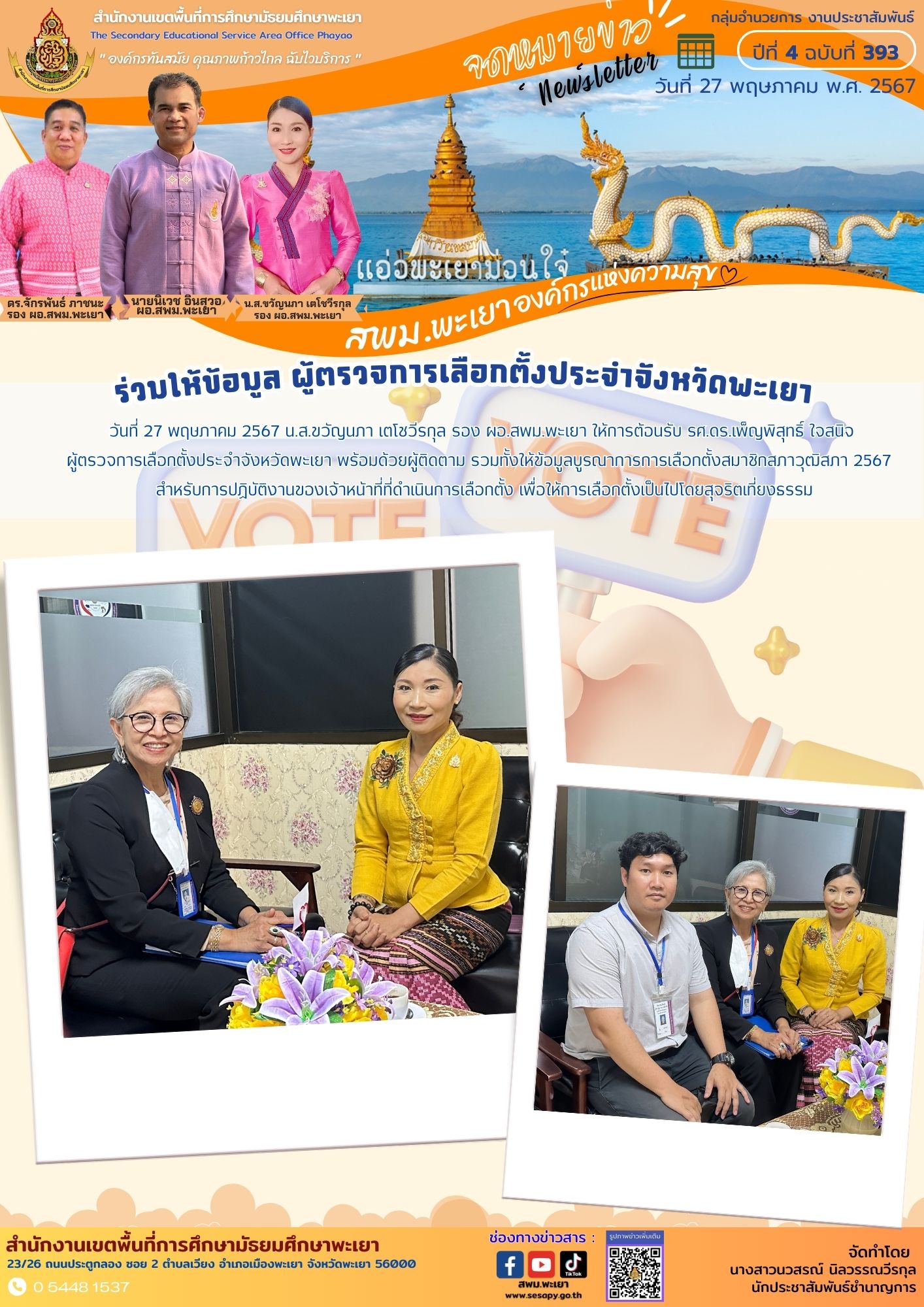 วันที่ 27 พฤษภาคม 2567 น.ส.ขวัญนภา เตโชวีรกุล รอง ผอ.สพม.พะเยา