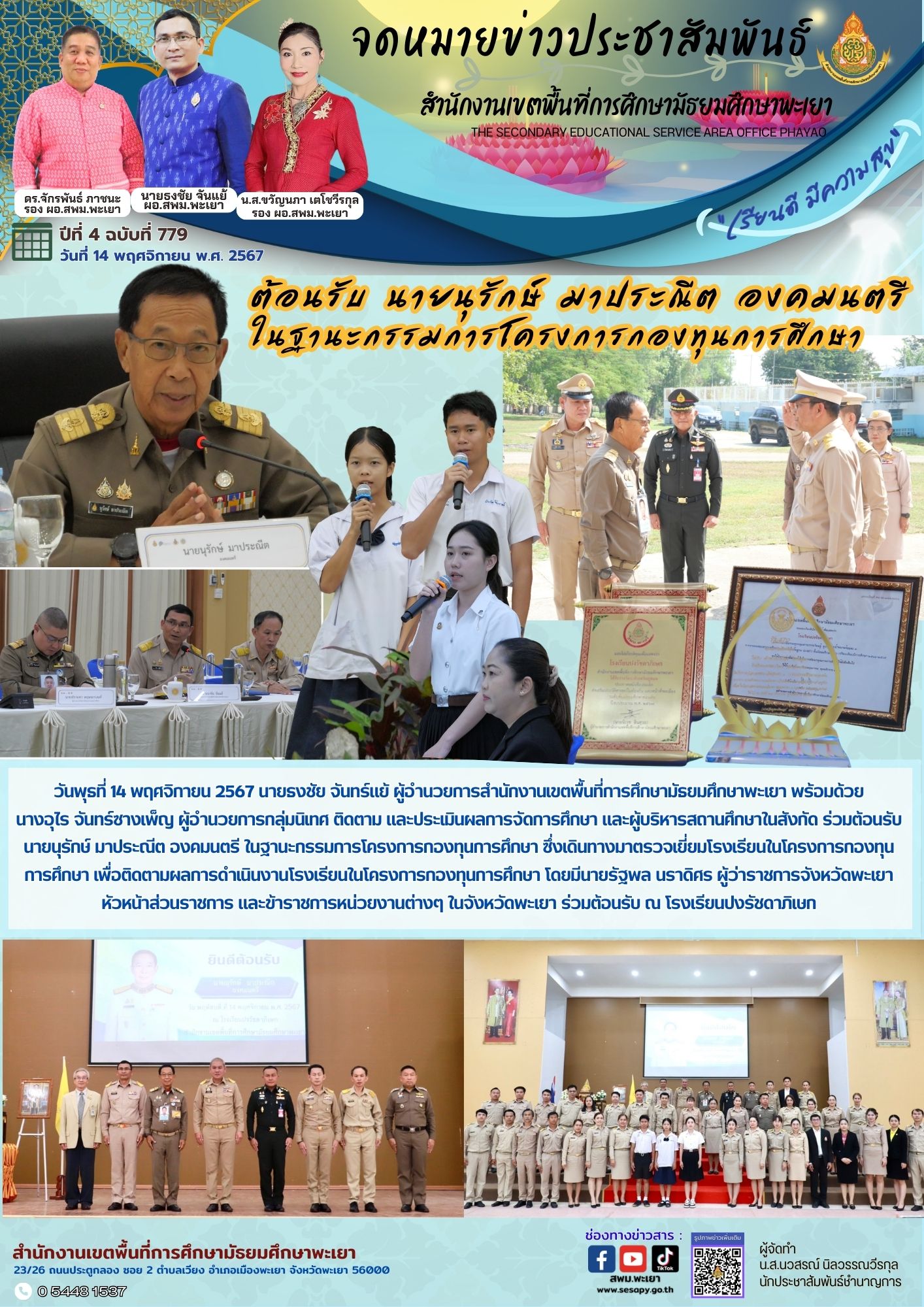 ผลการดำเนินงานโรงเรียนในโครงการกองทุนการศึกษา โดยมีนายรัฐพล นราดิศร ผู้ว่าราชการจังหวัดพะเยา