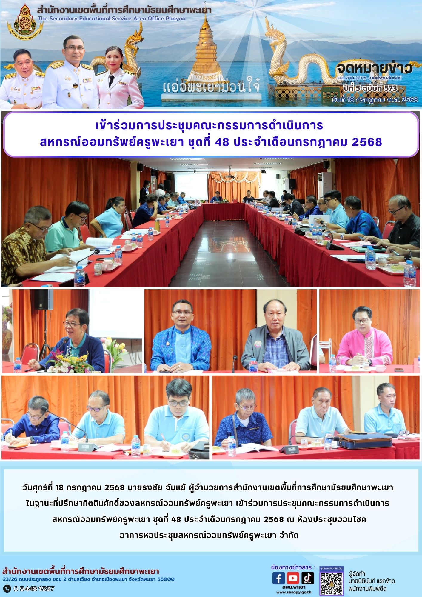 กลุ่มอำนวยการ งานประชาสัมพันธ์ ปีที่ 5 ฉบับที่ 573 : 18 กรกฎาคม 2568