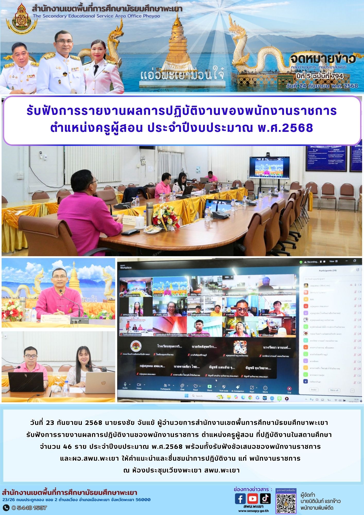 กลุ่มอำนวยการ งานประชาสัมพันธ์ ปีที่ 5 ฉบับที่ 794 : 24 กันยายน 2568