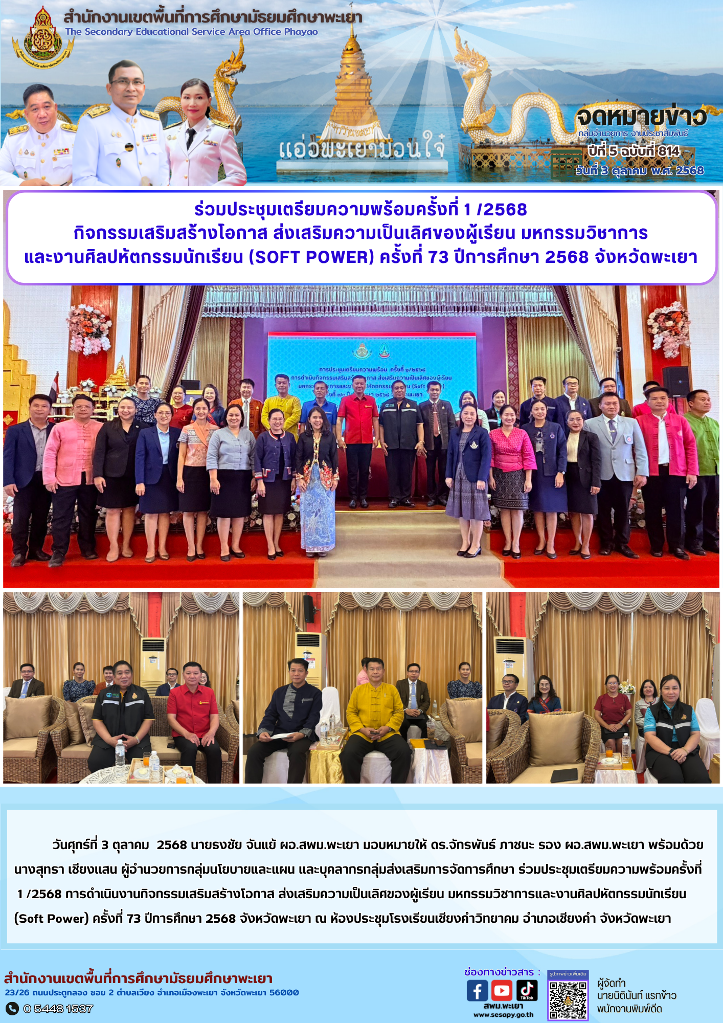 กลุ่มอำนวยการ งานประชาสัมพันธ์ ปีที่ 5 ฉบับที่ 814 : 3 ตุลาคม 2568
