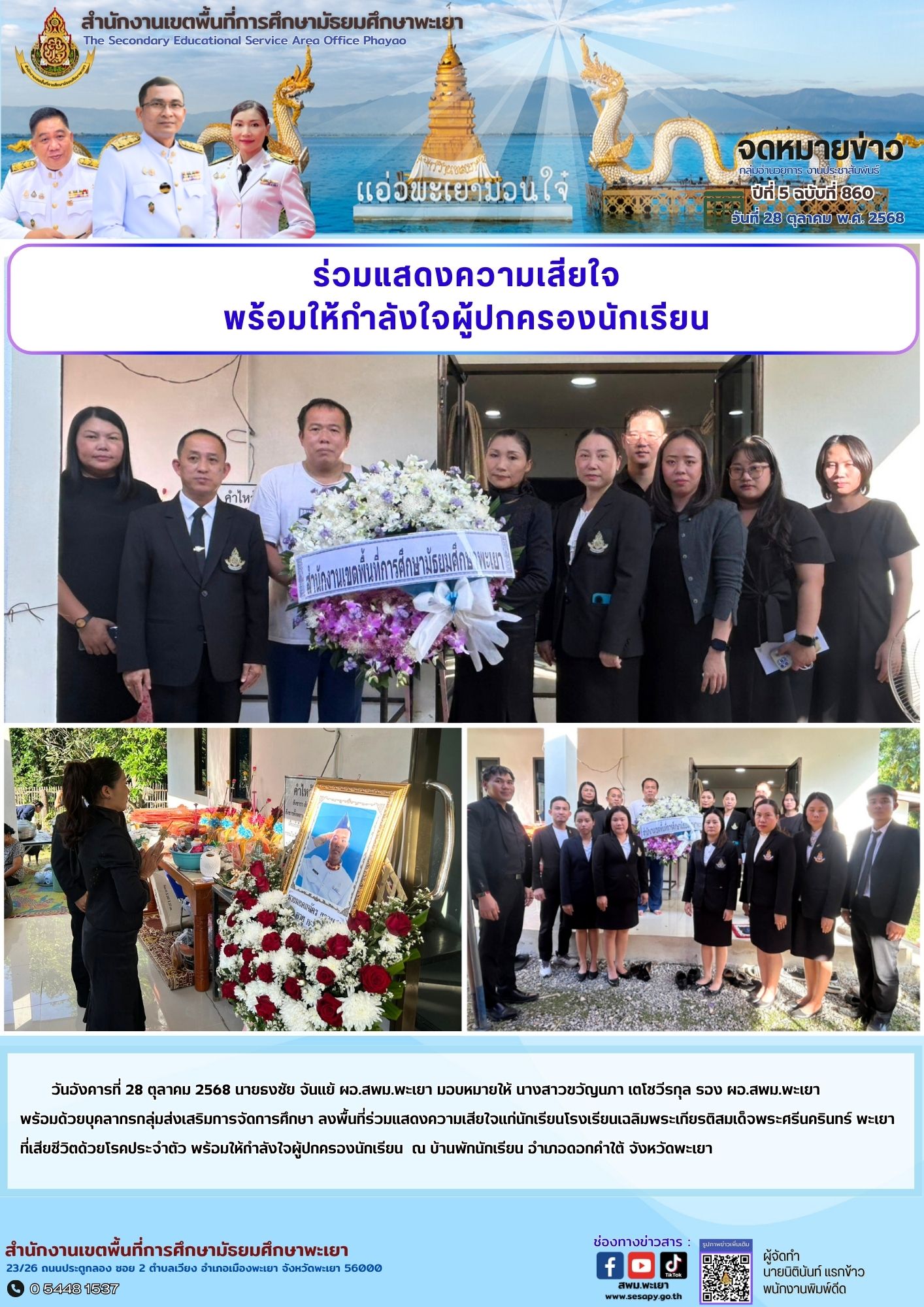 กลุ่มอำนวยการ งานประชาสัมพันธ์ ปีที่ 5 ฉบับที่ 860 : 28 ตุลาคม 2568