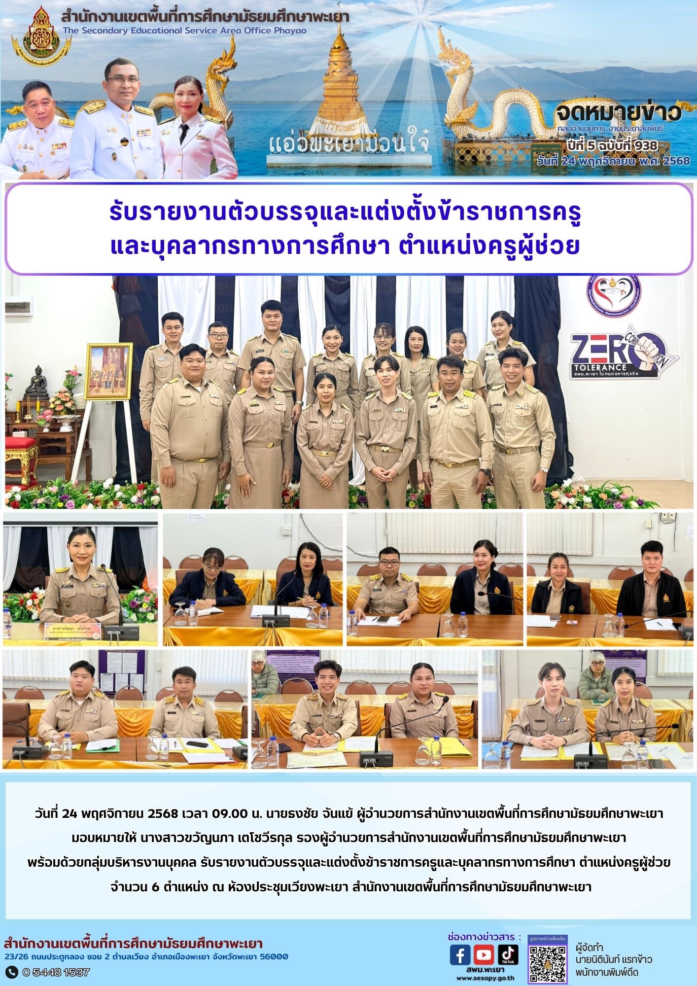 กลุ่มอำนวยการ งานประชาสัมพันธ์ ปีที่ 5 ฉบับที่ 938 : 24 พฤศจิกายน 2568