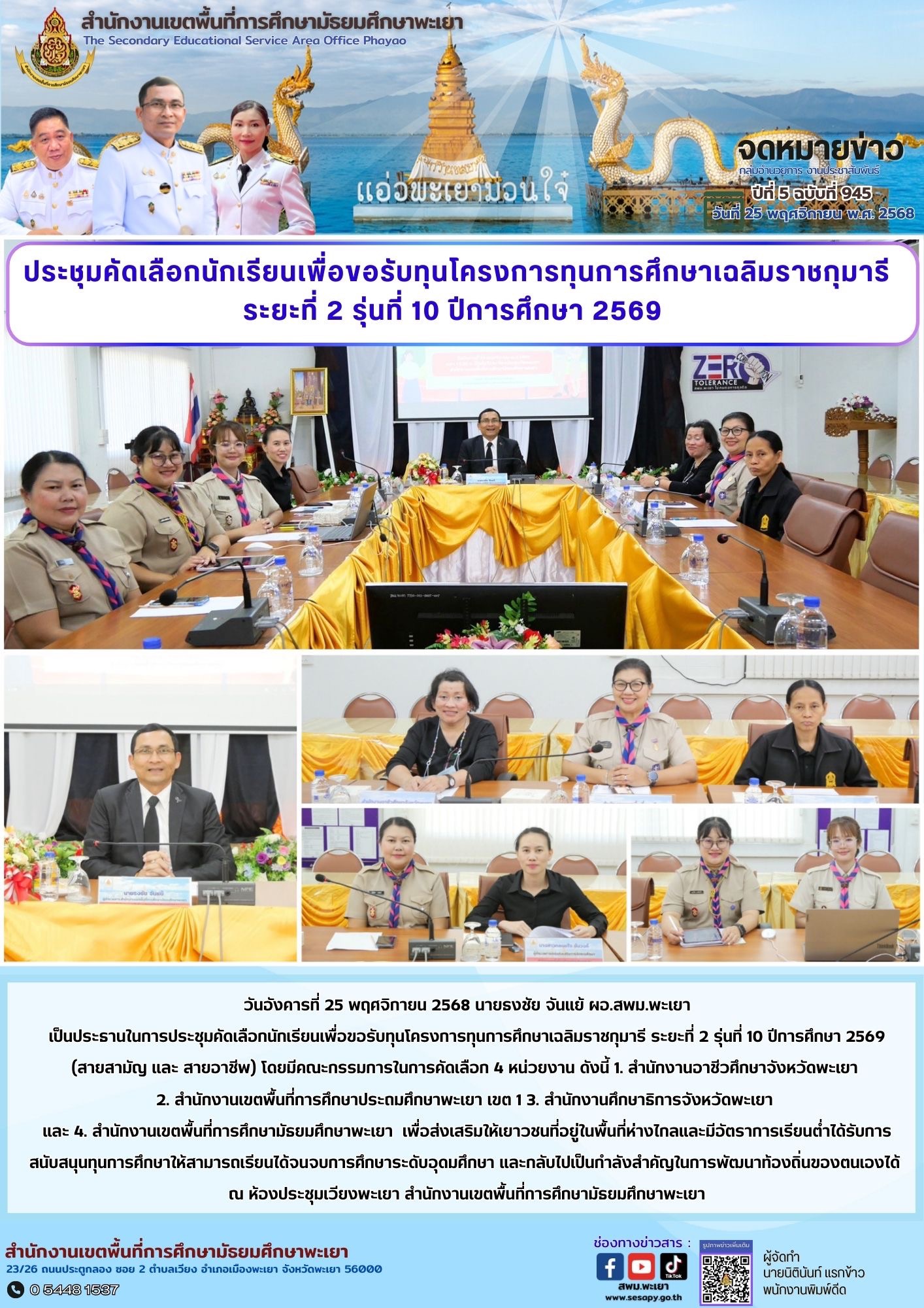 กลุ่มอำนวยการ งานประชาสัมพันธ์ ปีที่ 5 ฉบับที่ 945 : 25 พฤศจิกายน 2568
