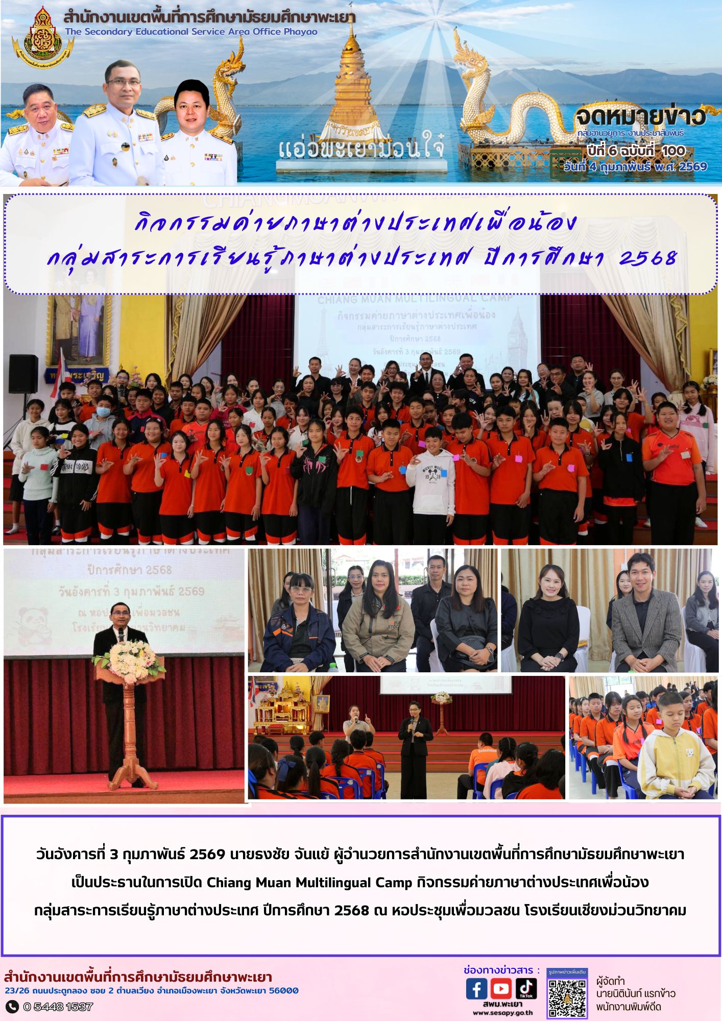 กลุ่มอำนวยการ งานประชาสัมพันธ์ ปีที่ 6 ฉบับที่ 100 : 4 กุมภาพันธ์ 2569