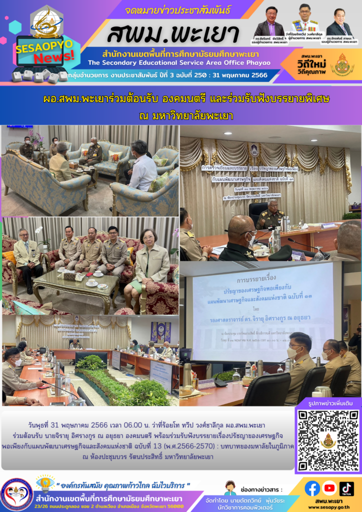 ผอ.สพม.พะเยาร่วมต้อนรับ องคมนตรี และร่วมรับฟังบรรยายพิเศษ ณ มหาวิทยาลัยพะเยา