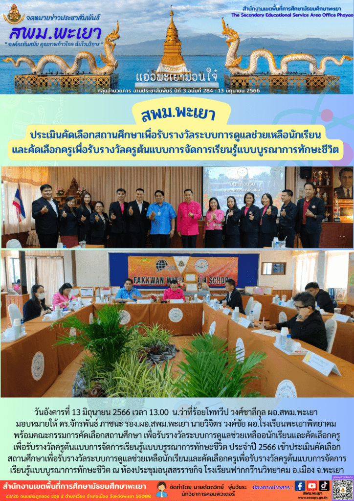 วันอังคารที่ 13 มิถุนายน 2566 เวลา 13.00 น.ว่าที่ร้อยโททวีป วงศ์ชาลีกุล ผอ.สพม.พะเยา