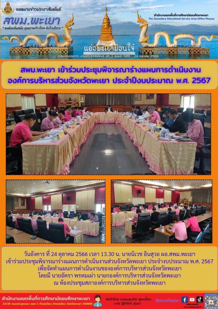 สพม.พะเยา เข้าร่วมประชุมพิจารณาร่างแผนการดำเนินงาน