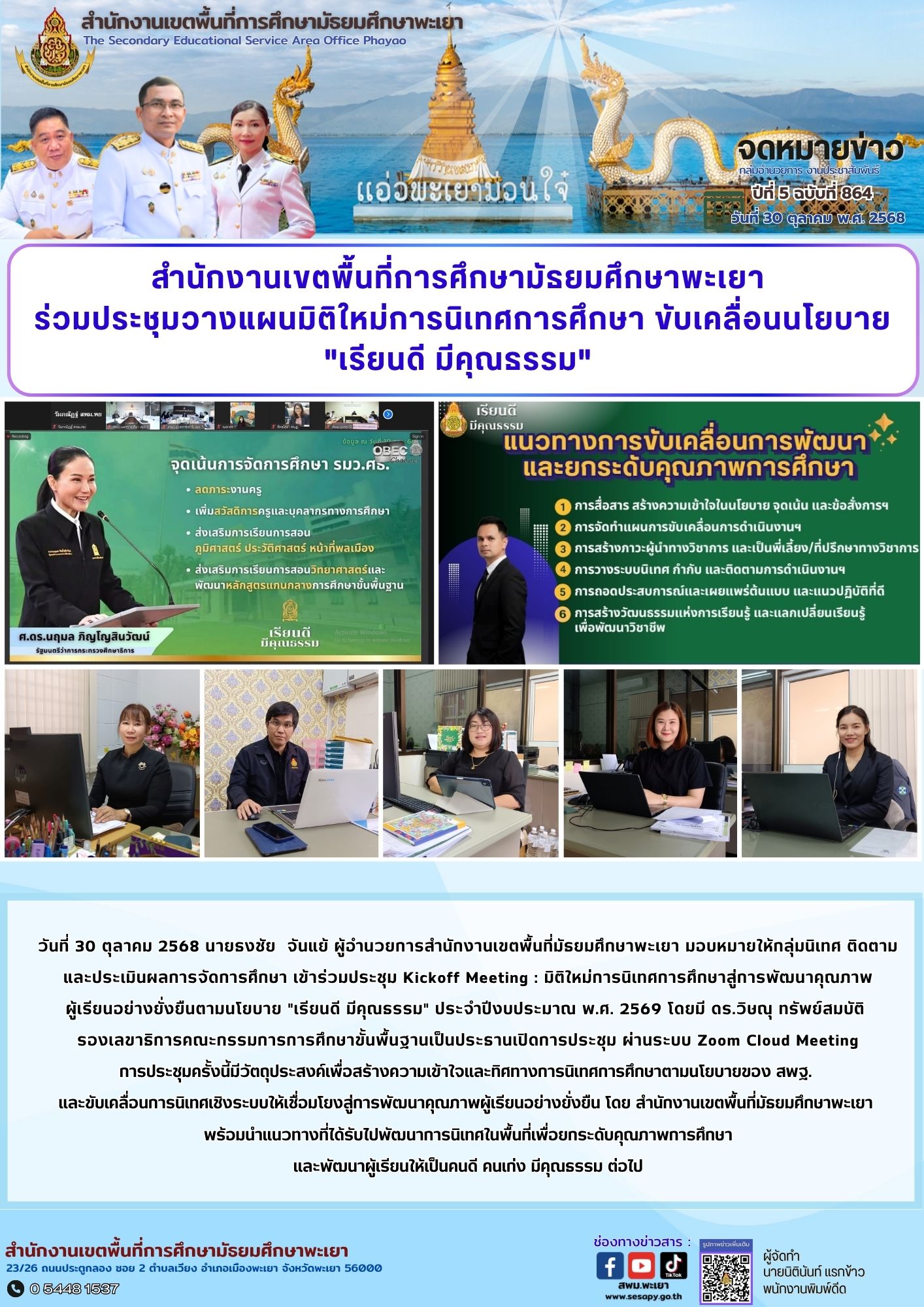 กลุ่มอำนวยการ งานประชาสัมพันธ์ ปีที่ 5 ฉบับที่ 864 : 30 ตุลาคม 2568