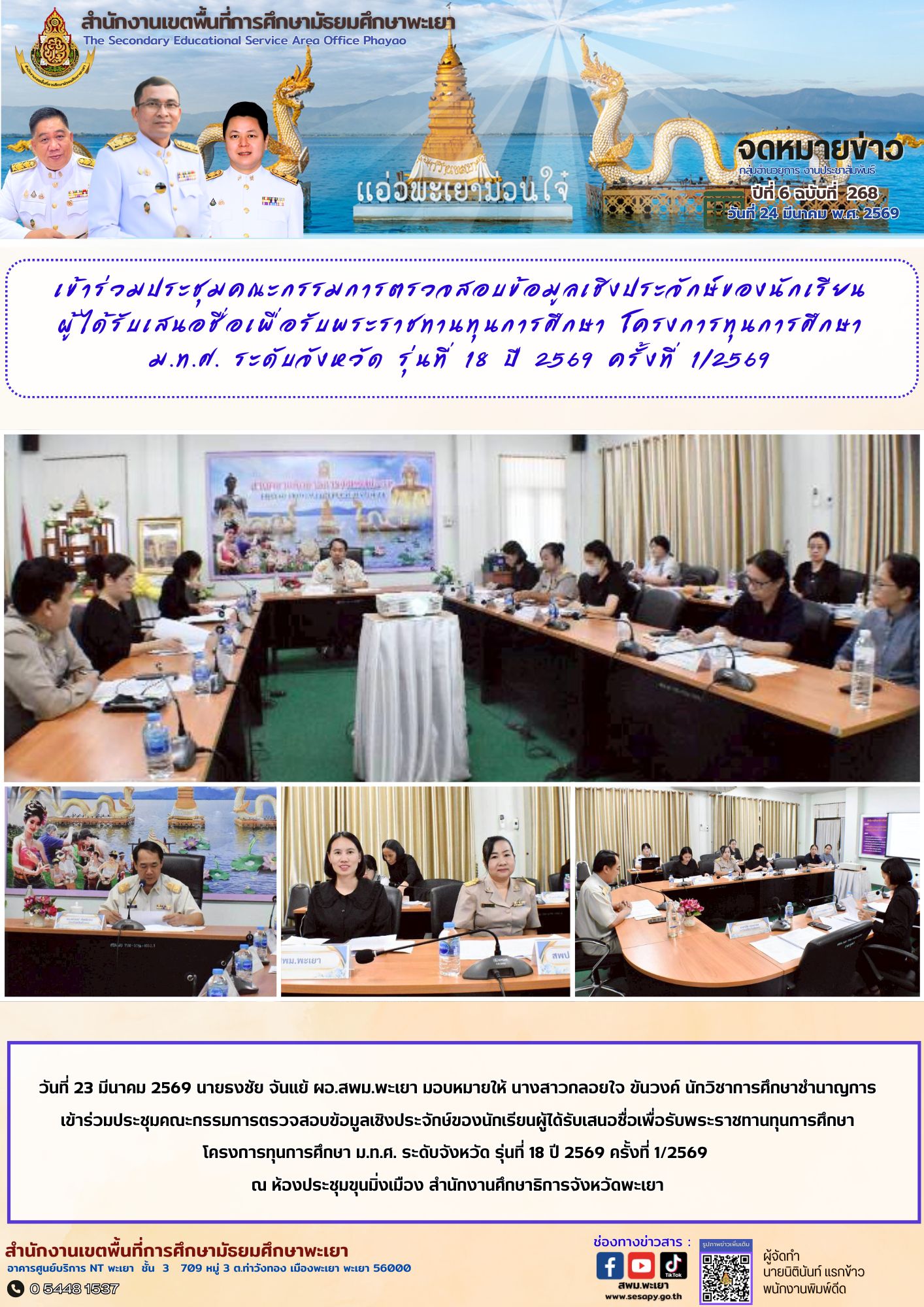 อำนวยการ งานประชาสัมพันธ์ ปีที่ 6 ฉบับที่ 268 : 24 มีนาคม 2569