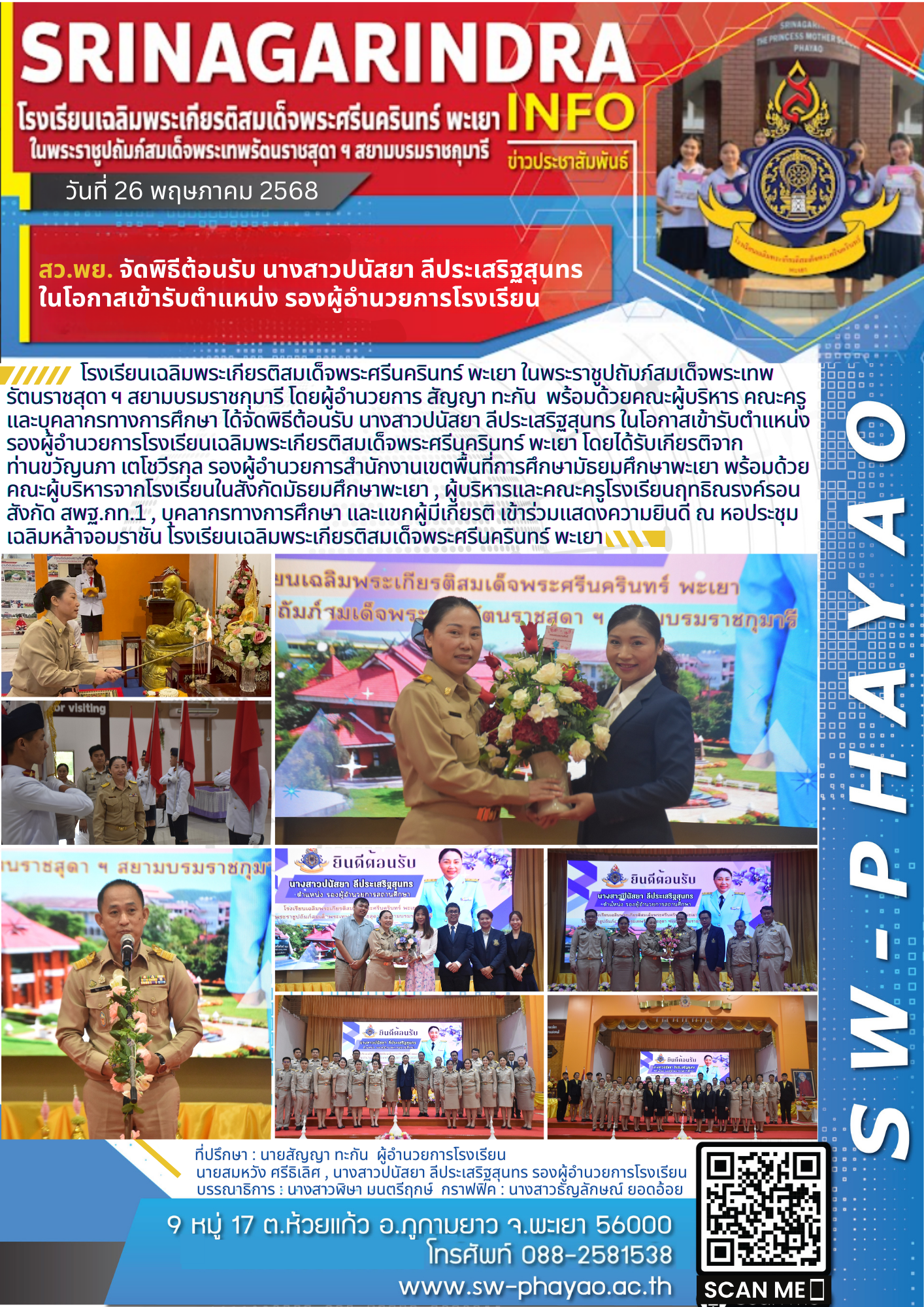 สว.พย. จัดพิธีต้อนรับ นางสาวปนัสยา ลีประเสริฐสุนทร ในโอกาสเข้ารับตำแหน่ง รองผู้อำนวยการโรงเรียน