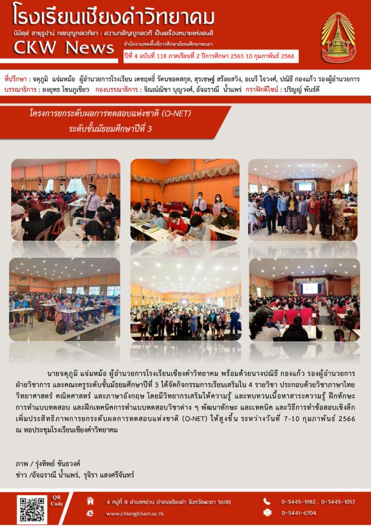 โครงการยกระดับผลการทดสอบแห่งชาติ (O-NET) ระดับชั้นมัธยมศึกษาปีที่ 3